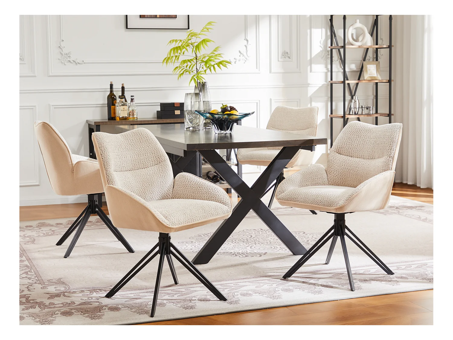 Lot de 4 Chaises de salle à manger - pivotant à 360° - tissu en sherpa - Blanc