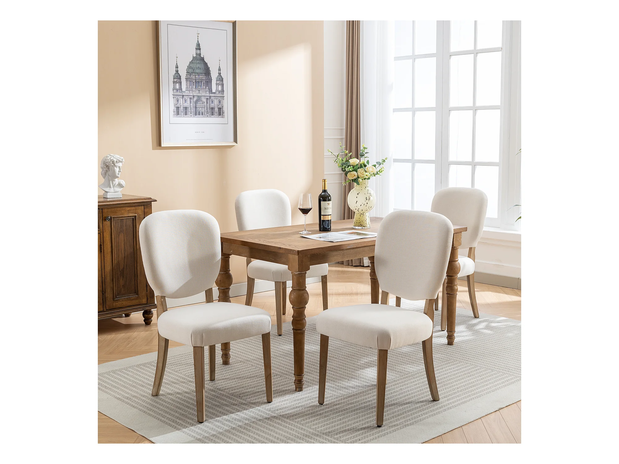 Lot de 4 Chaises de salle à manger - Tissu en lin - avec dossier de chaise décoré de clous en cuivre - Pièds en nois massif - Crème
