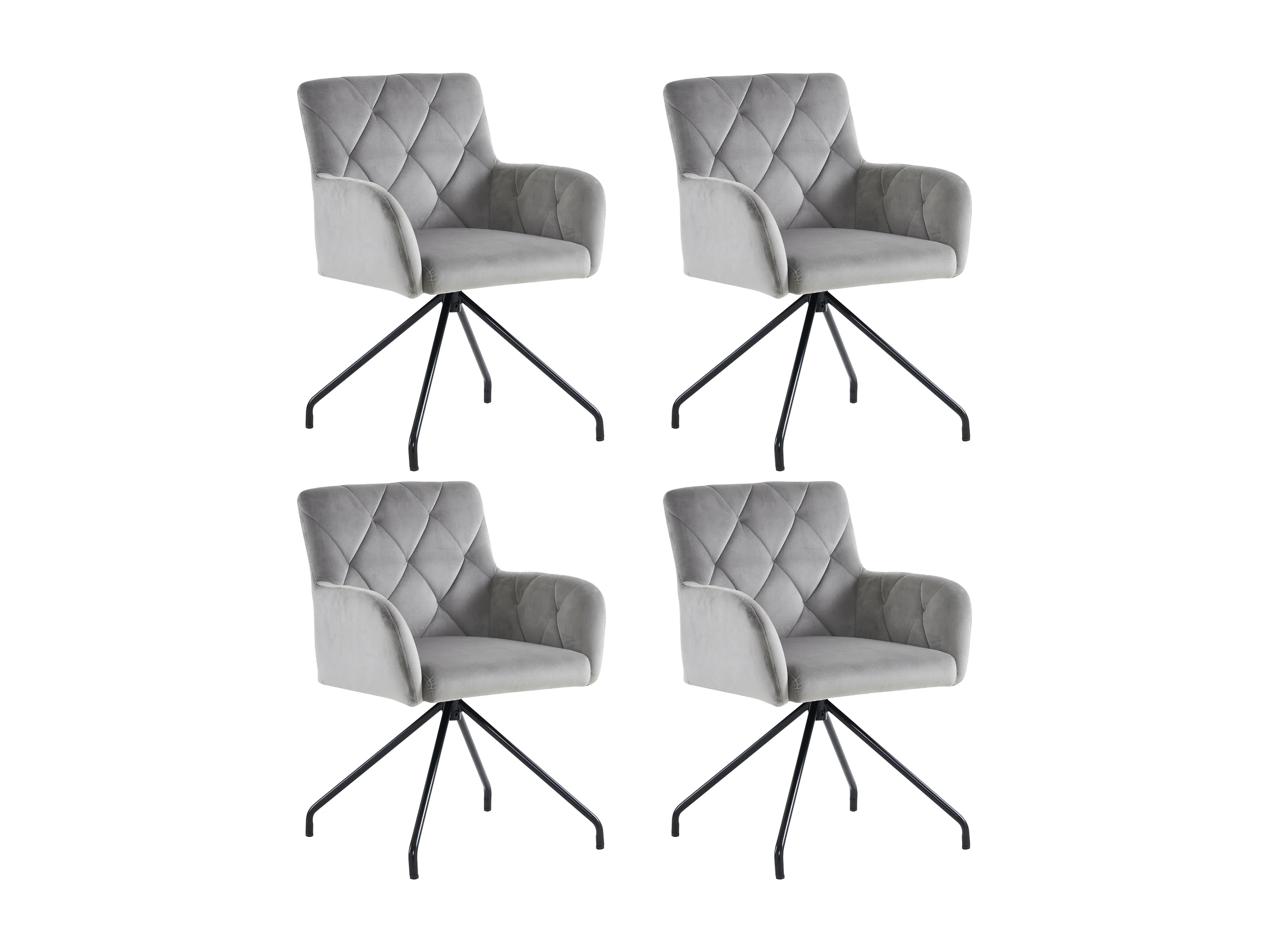 Lot de 4 chaises de salle à manger, velours gris clair, chaise avec dossier à motif losange, pieds en métal noir