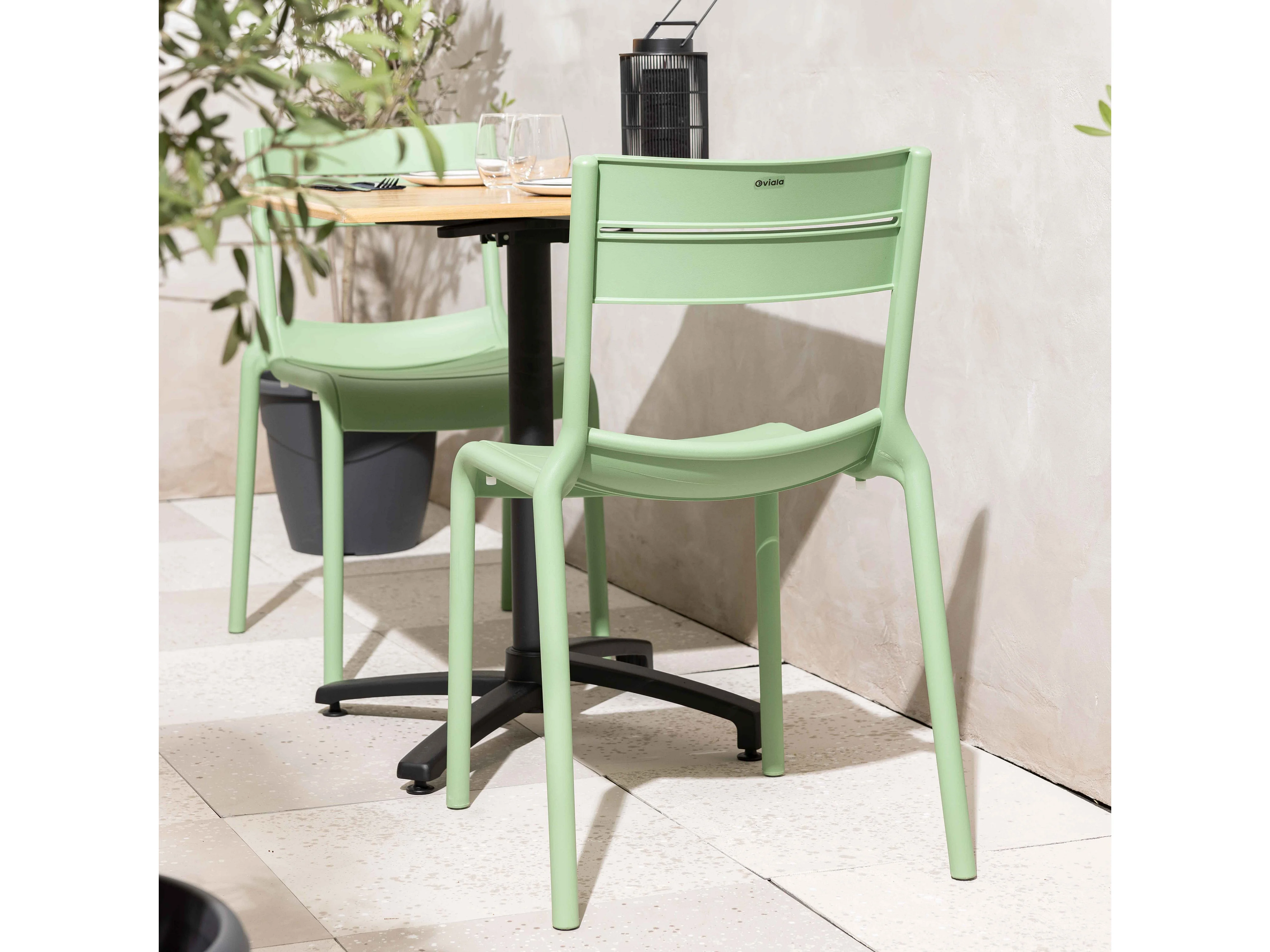 Lot de 4 chaises de terrasse en plastique vert sauge
