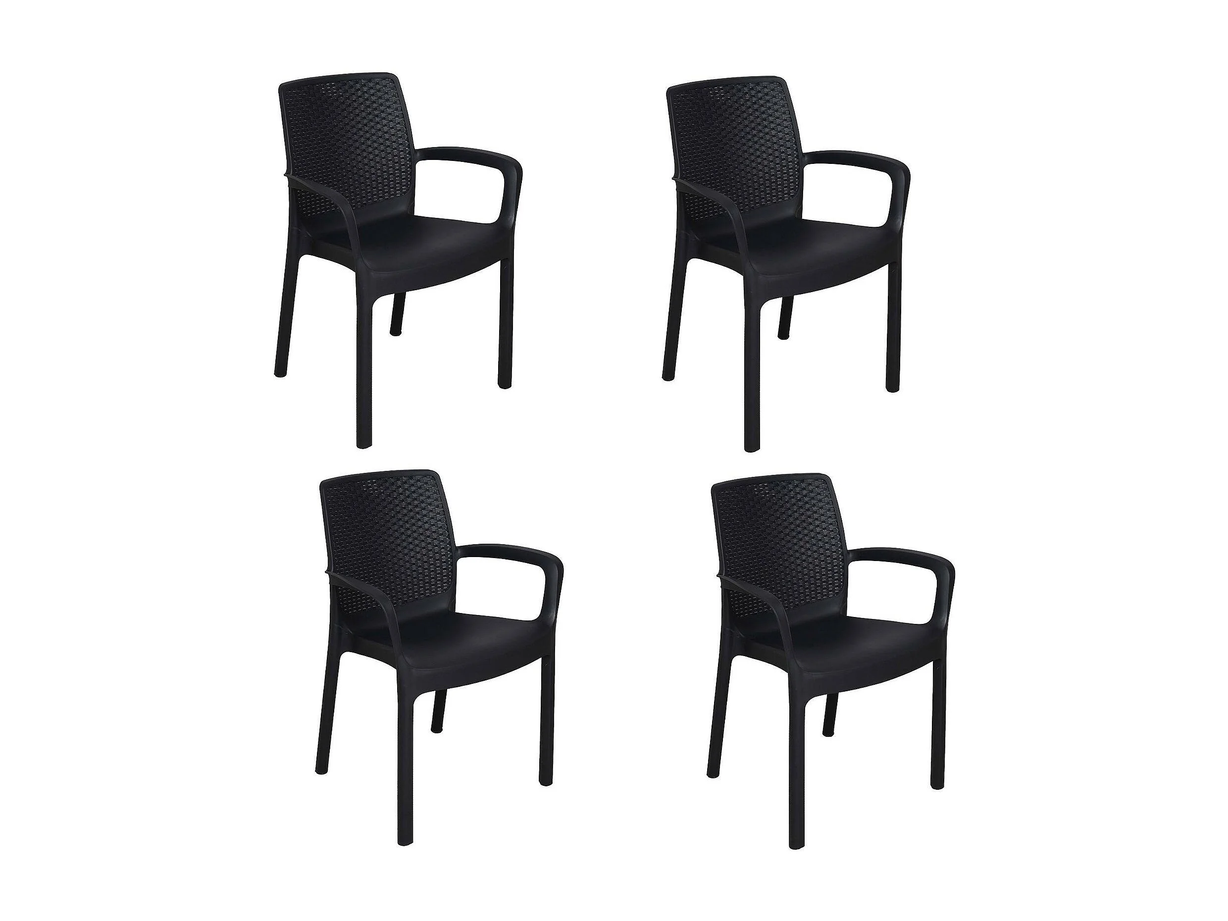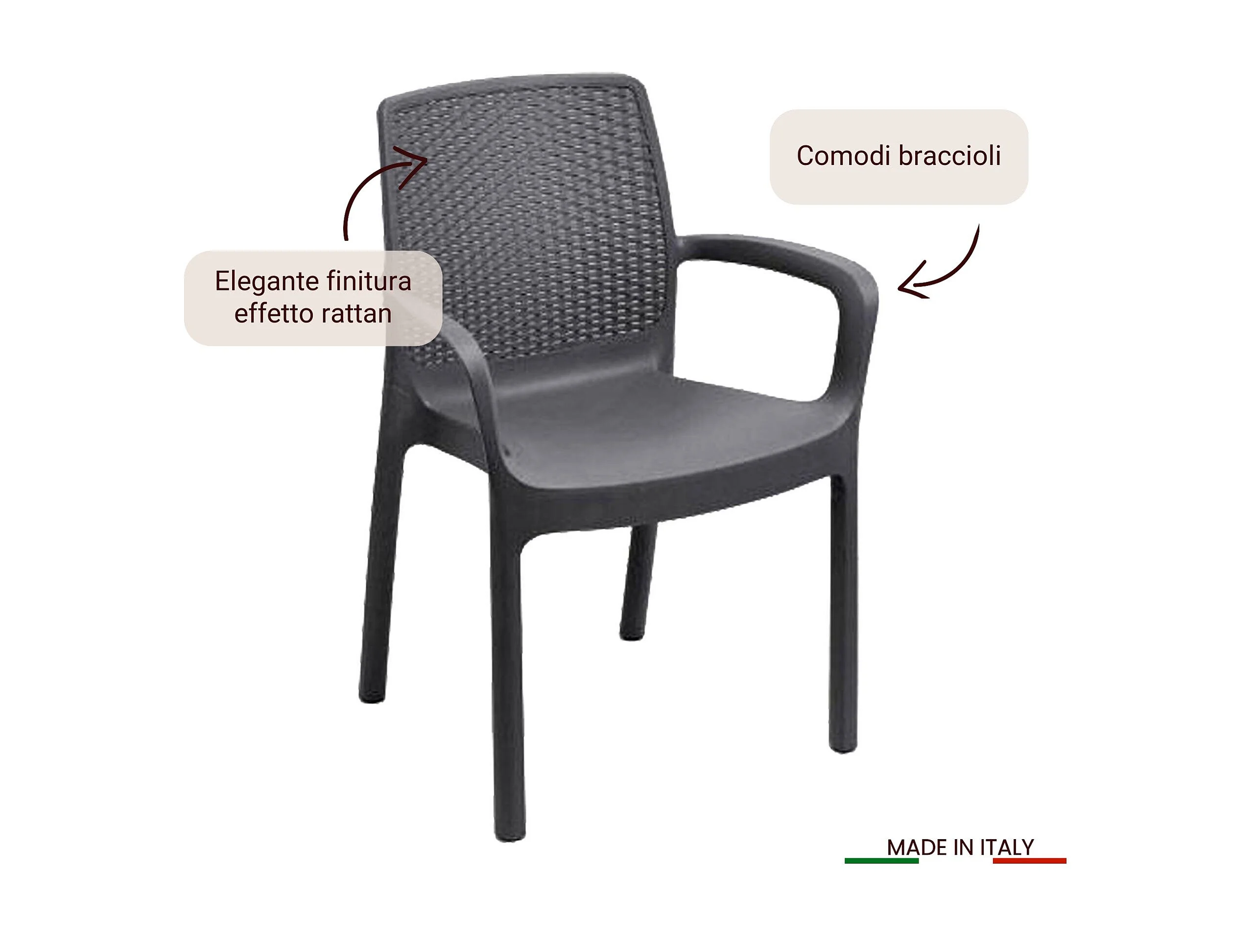 Lot de 4 chaises d'extérieur Viterbo, Sièges de jardin, Chaise de table à manger, Fauteuil d'extérieur effet rotin, 100% Made in Italy, 54x60h82 cm, Anthracite