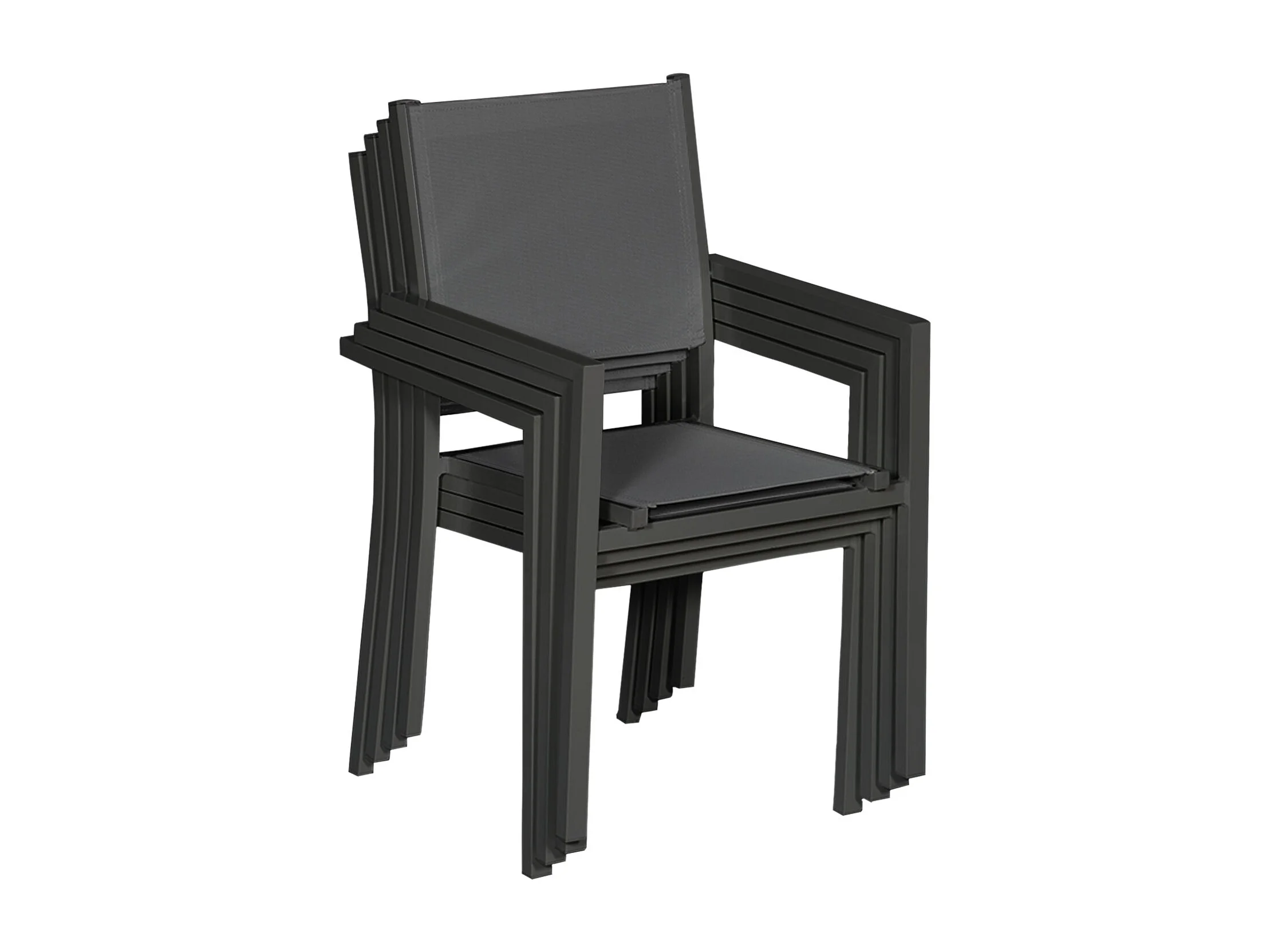 Lot de 4 chaises en aluminium anthracite - textilène gris