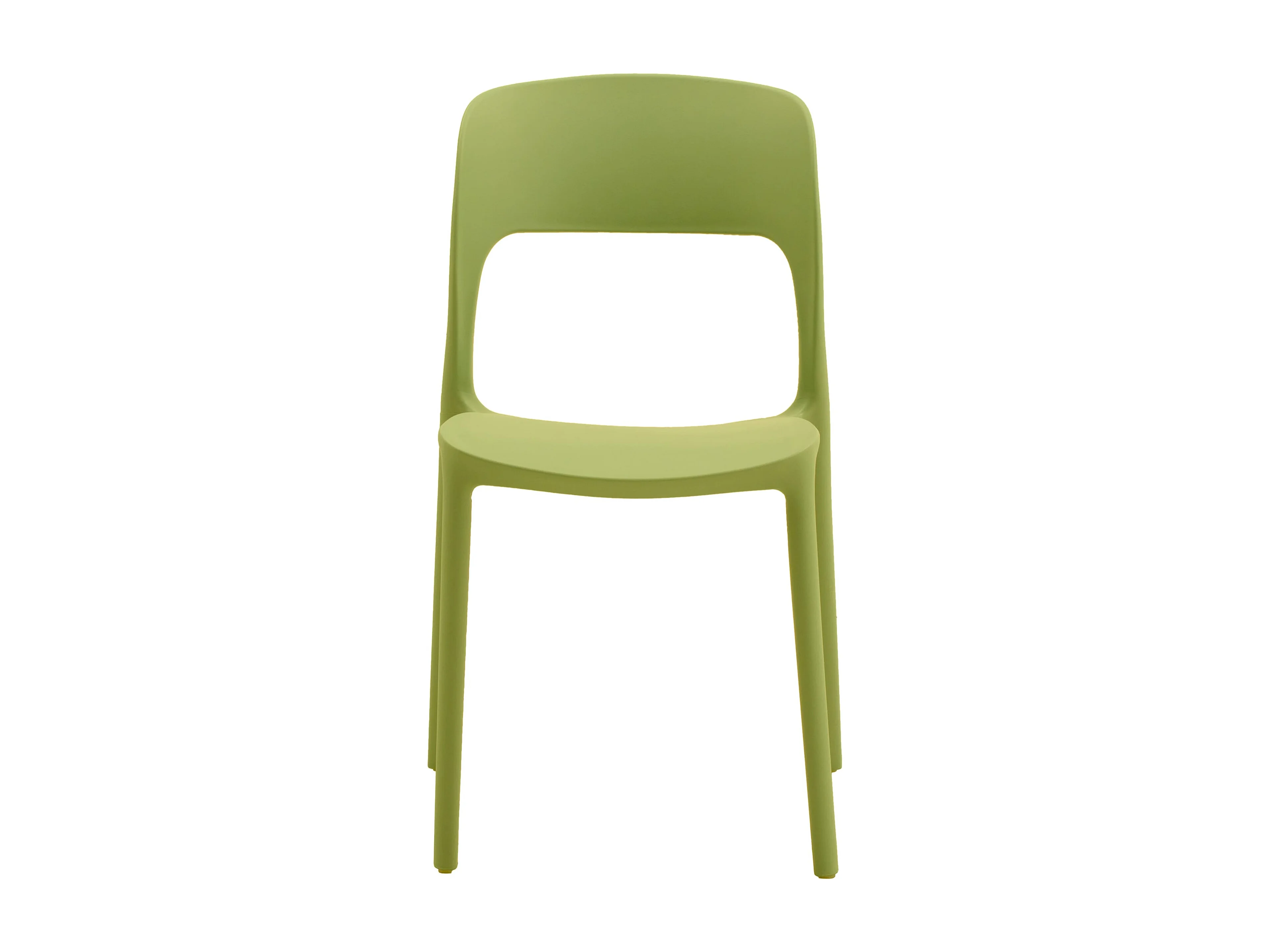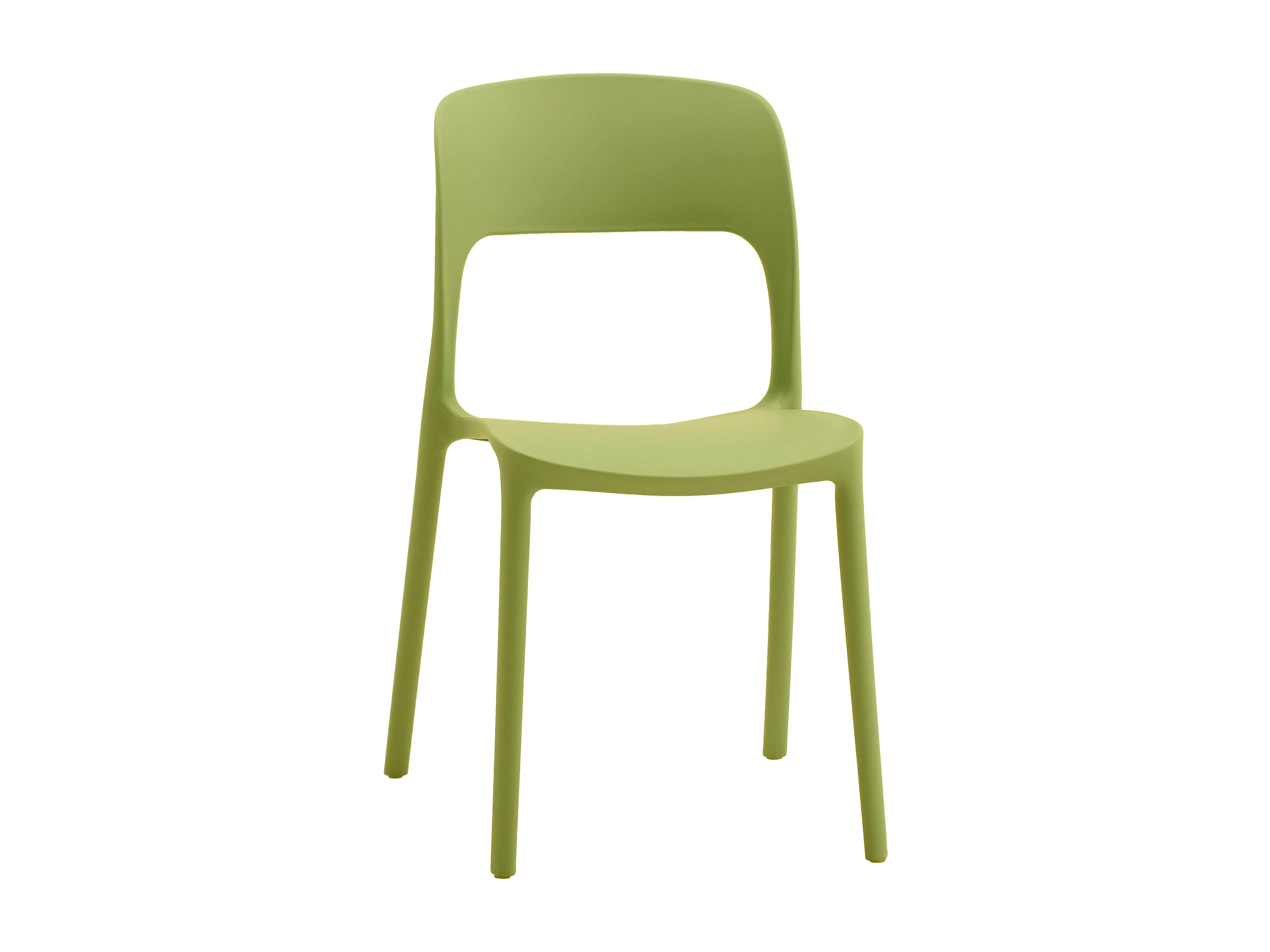 Chaise Alice en plastique empilable, couleur vert sauge, modèle confort