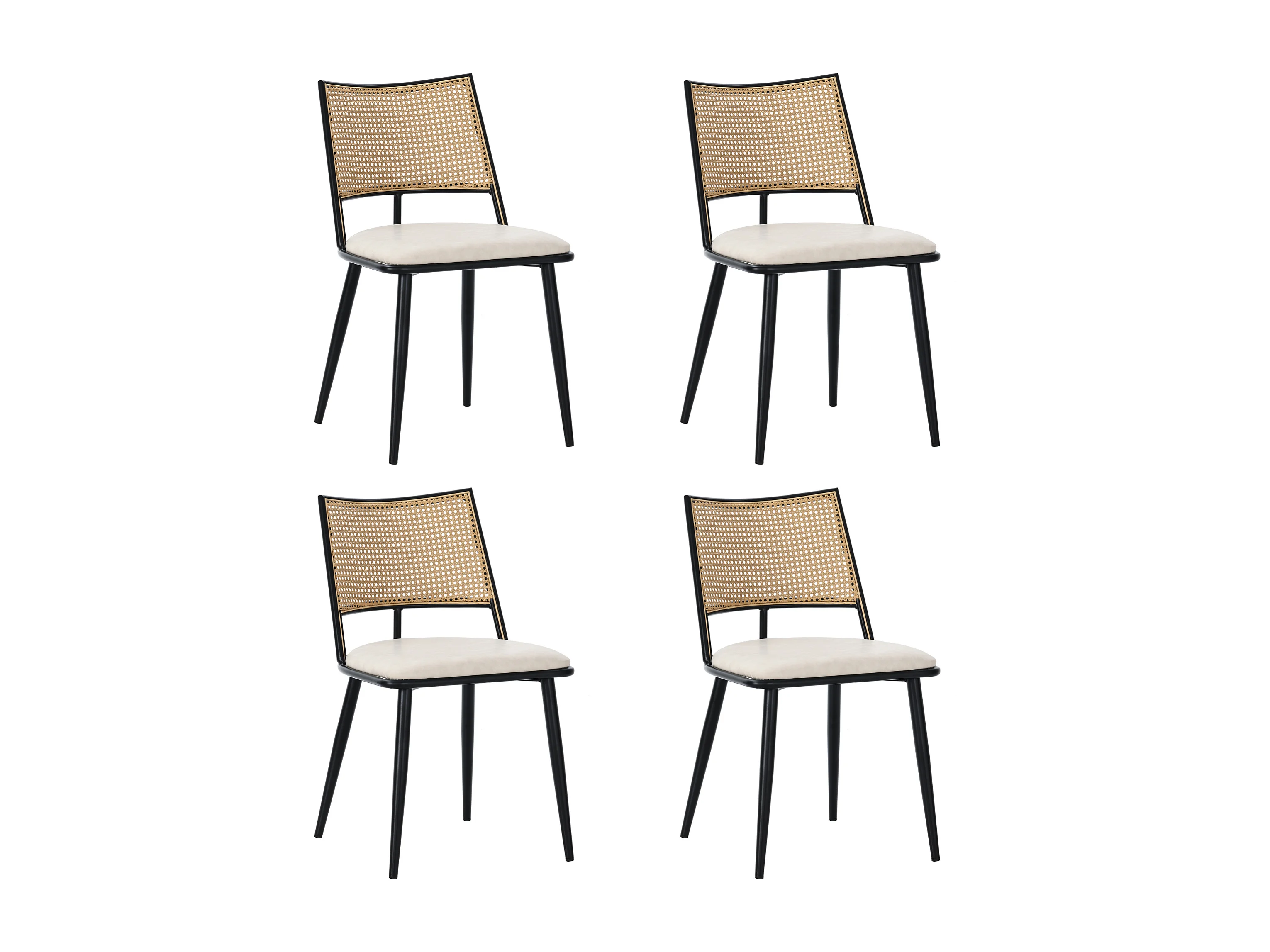 Lot de 4 chaises en rotin et Assise rembourrée en PU, noir