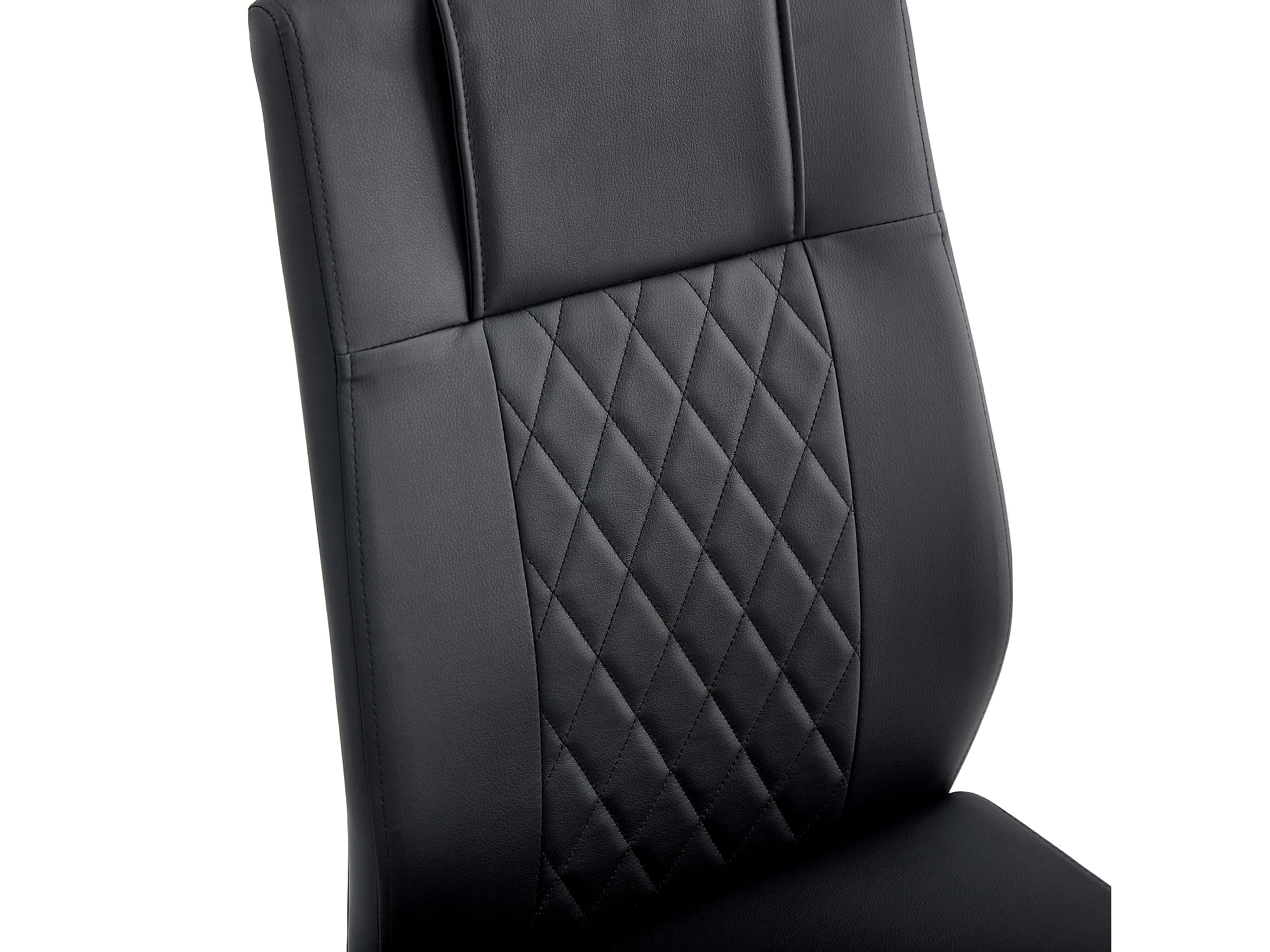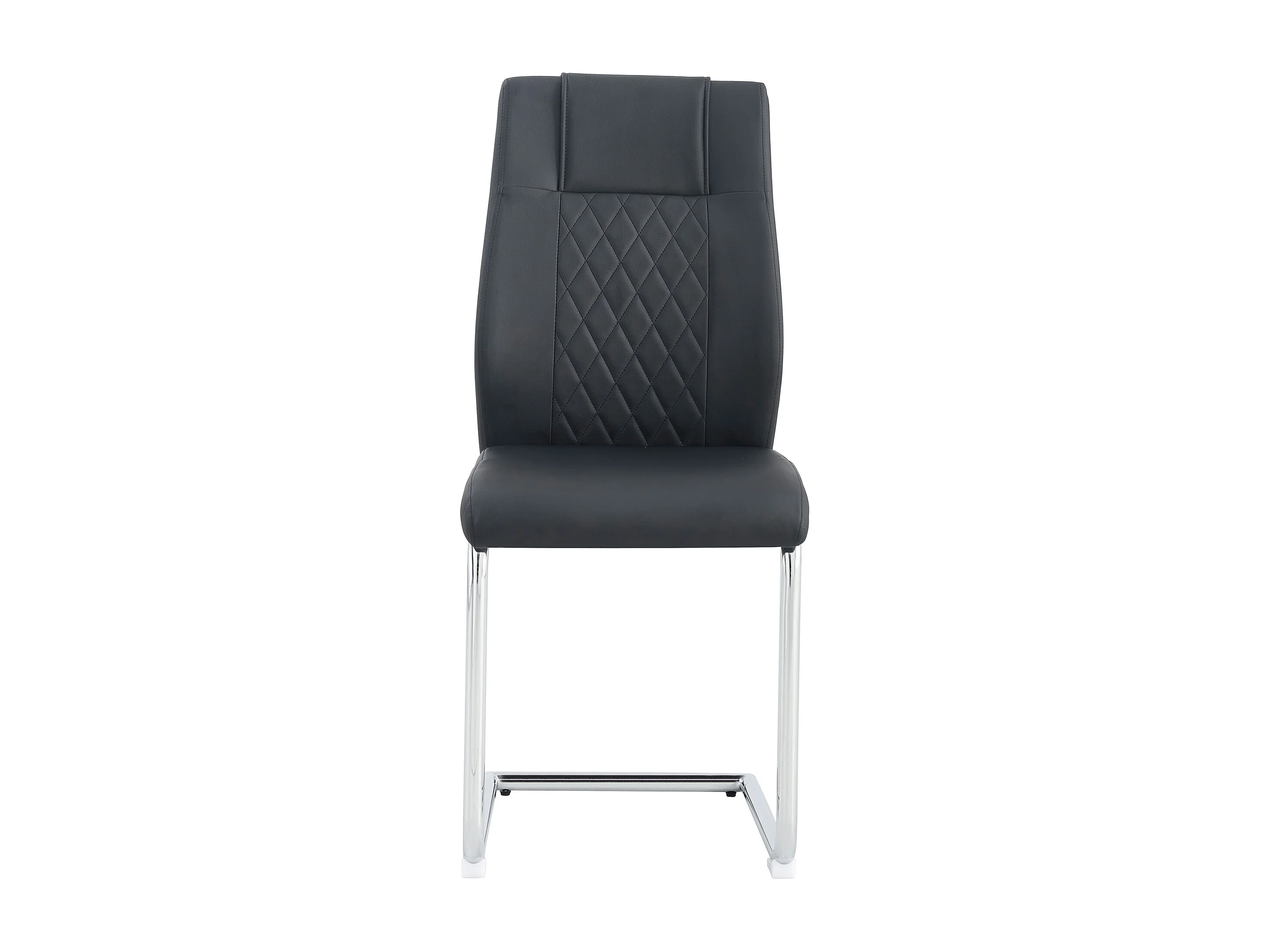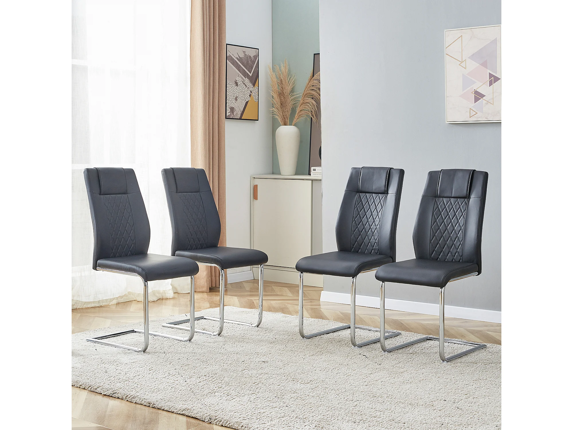 Lot de 4 chaises en simili cuir PU noir - Pieds métal argenté antidérapants