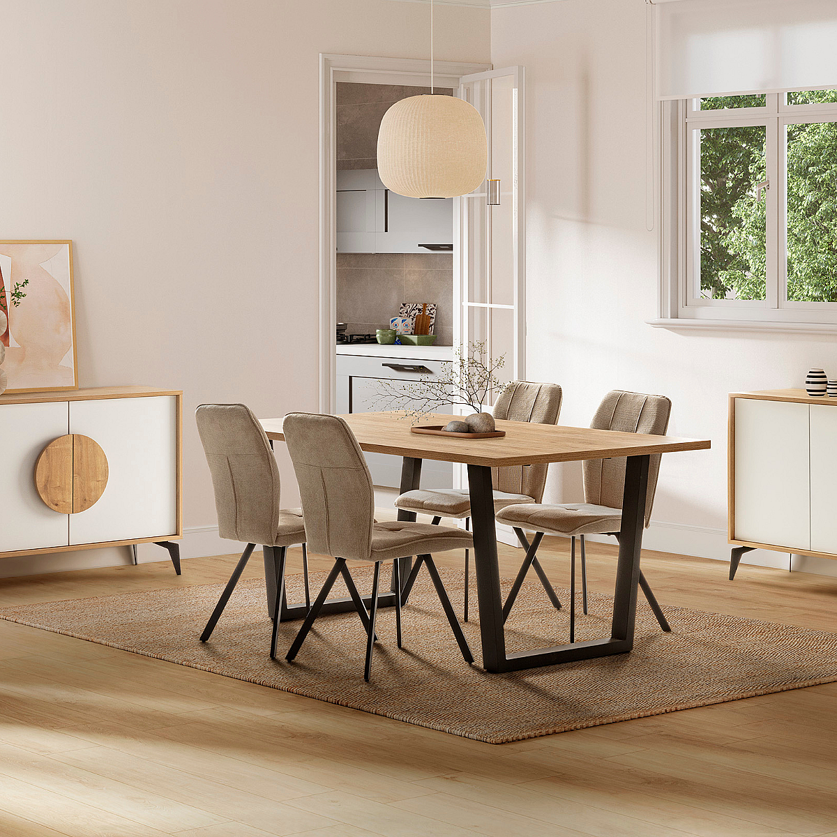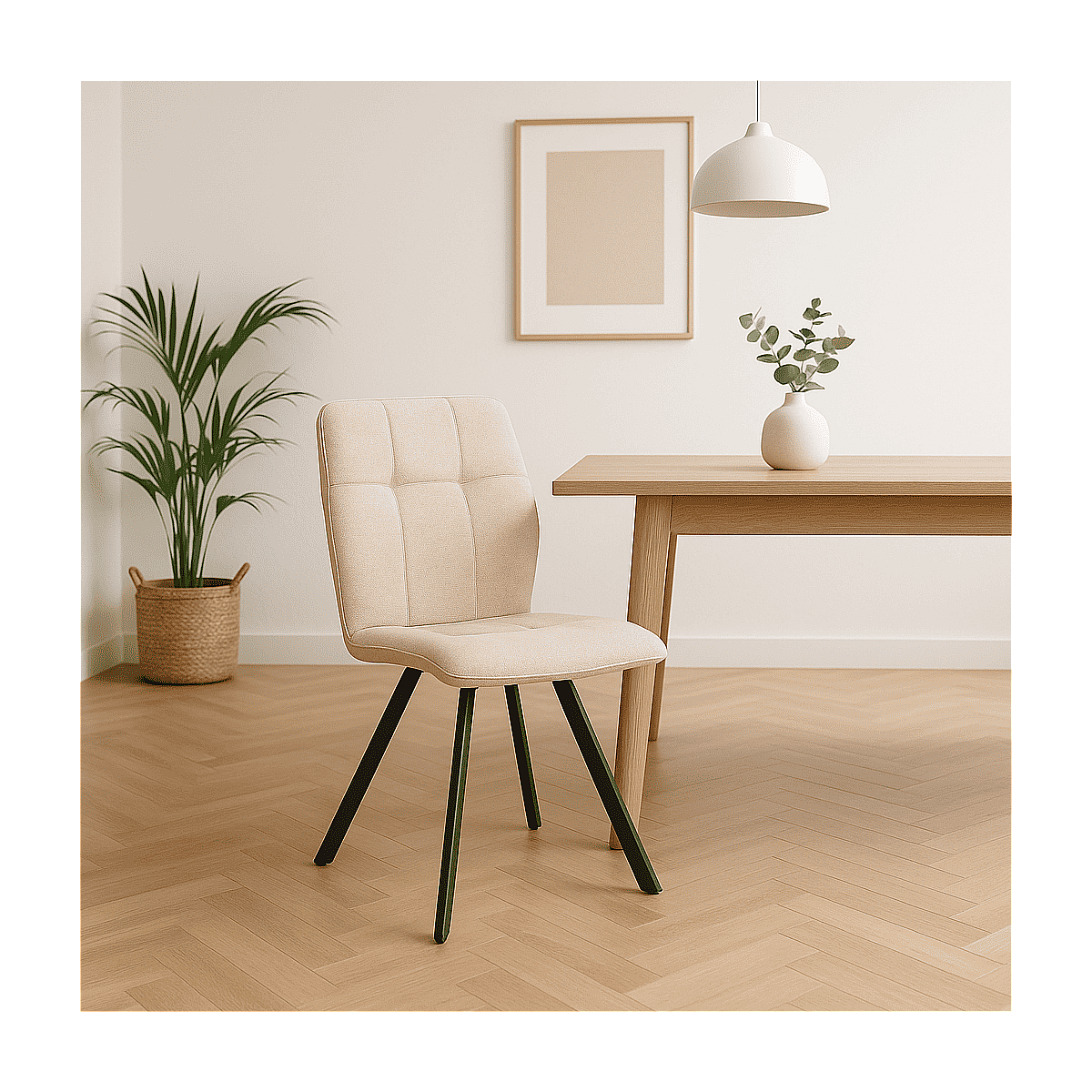 Chaise Valora BELLO en velours beige, pieds en métal noir x4