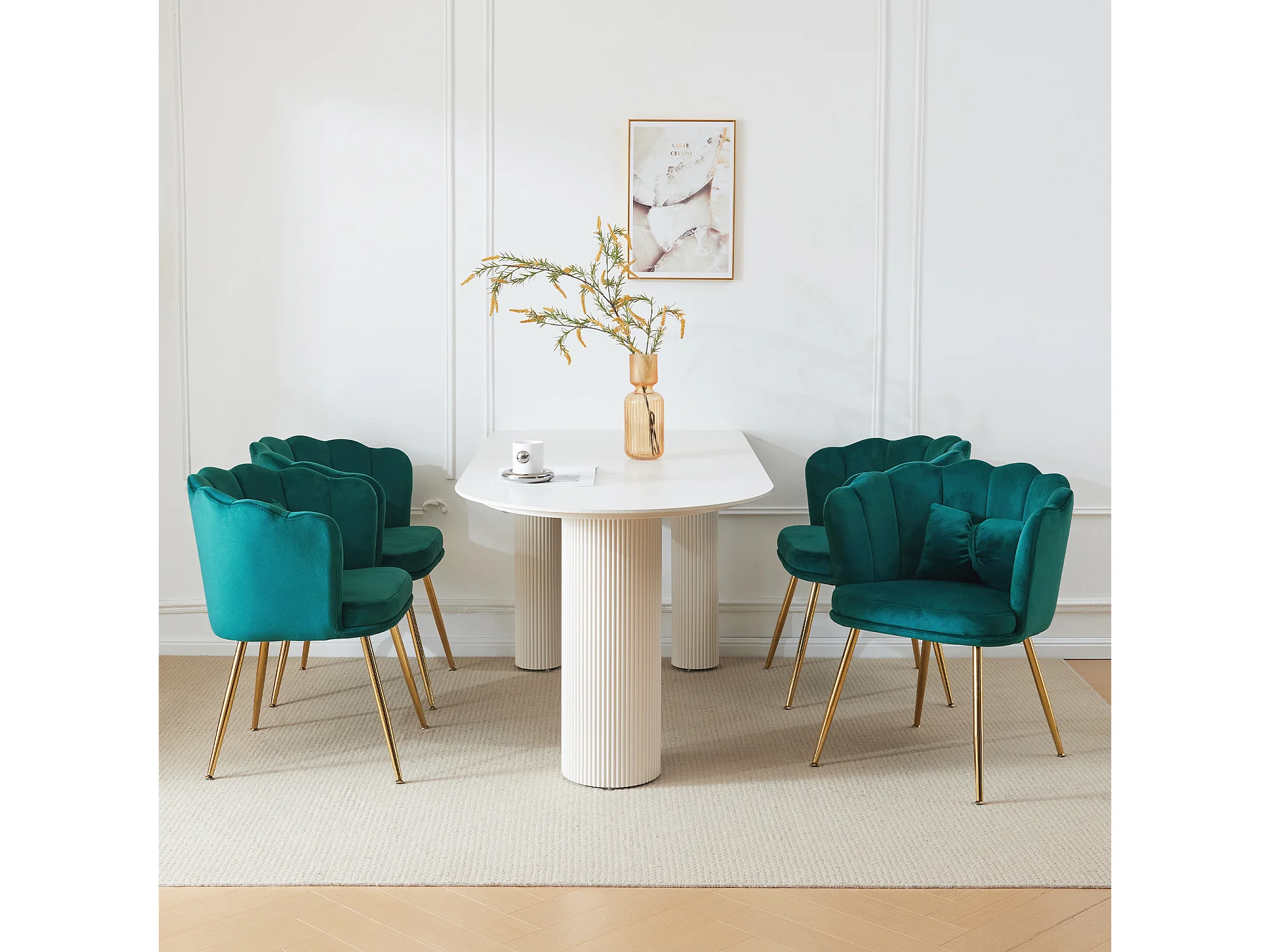 Lot de 4 Chaises en velours - avec dossier en forme de pétale - pieds en métal doré - Vert sapin