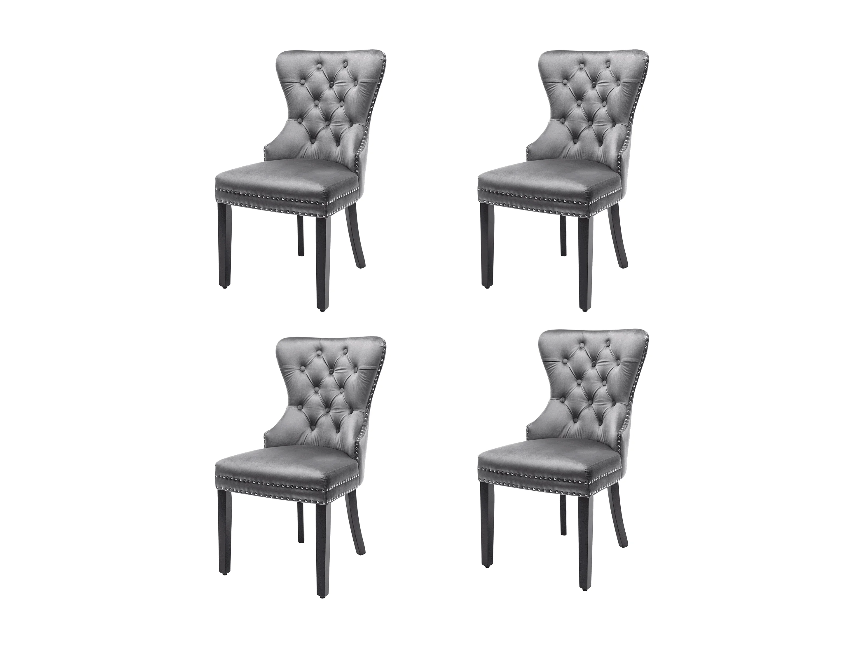 Lot de 4 chaises en velours avec structure bois massif – gris