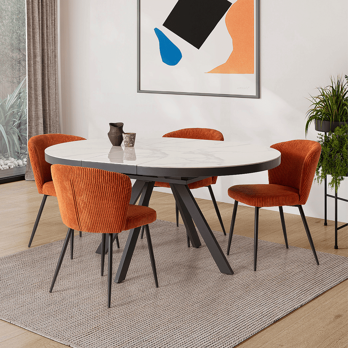Table à manger extensible 6 à 10 personnes en céramique et métal noir - Effet marbre blanc - OLIFIA de Maison Céphy