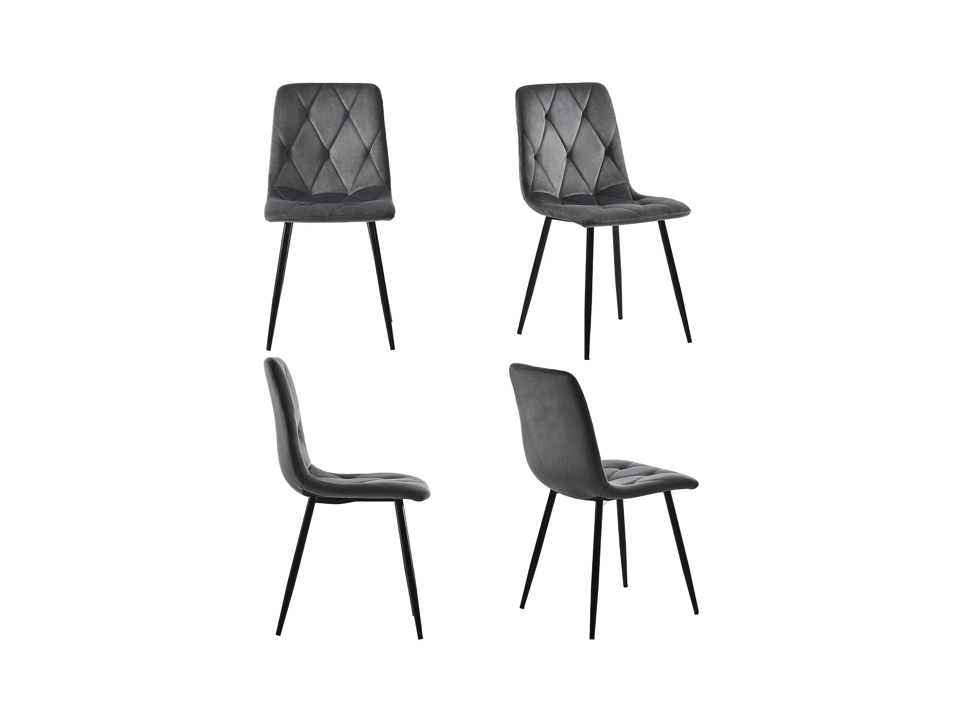 Lot de 4 chaises de cuisine en velours gris, pieds en métal noir