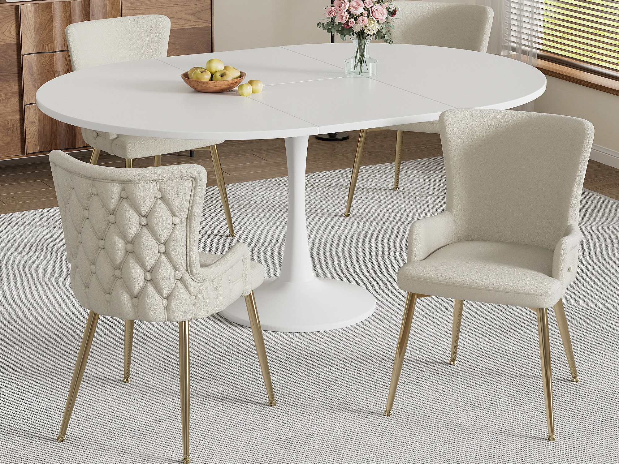 Lot de 4 chaises en velours - pieds en métal doré - Beige