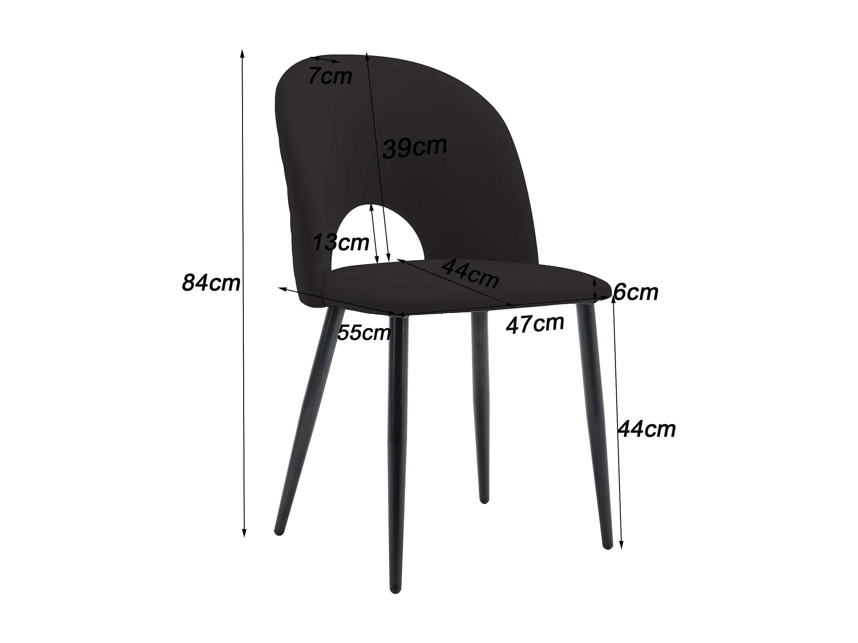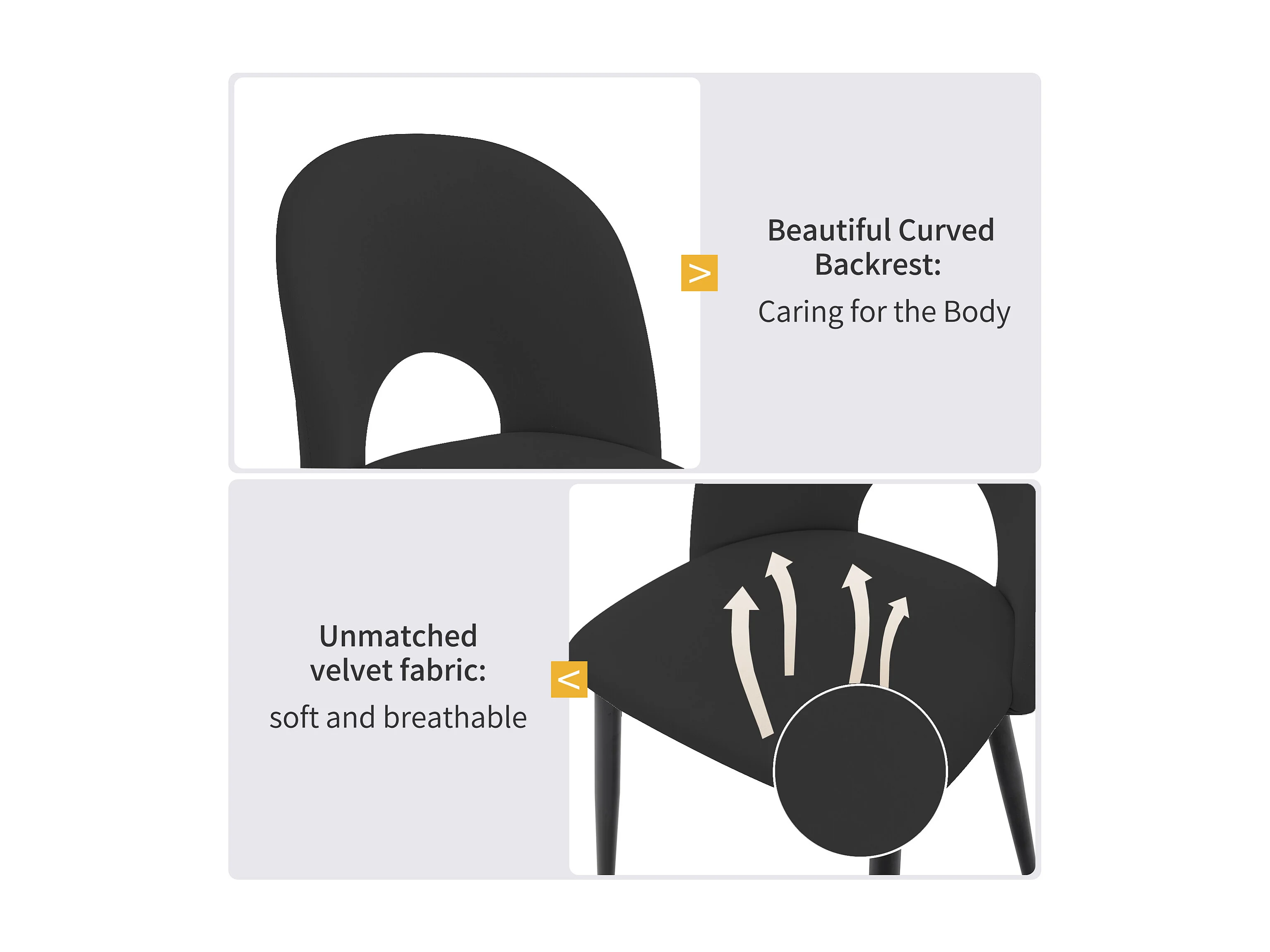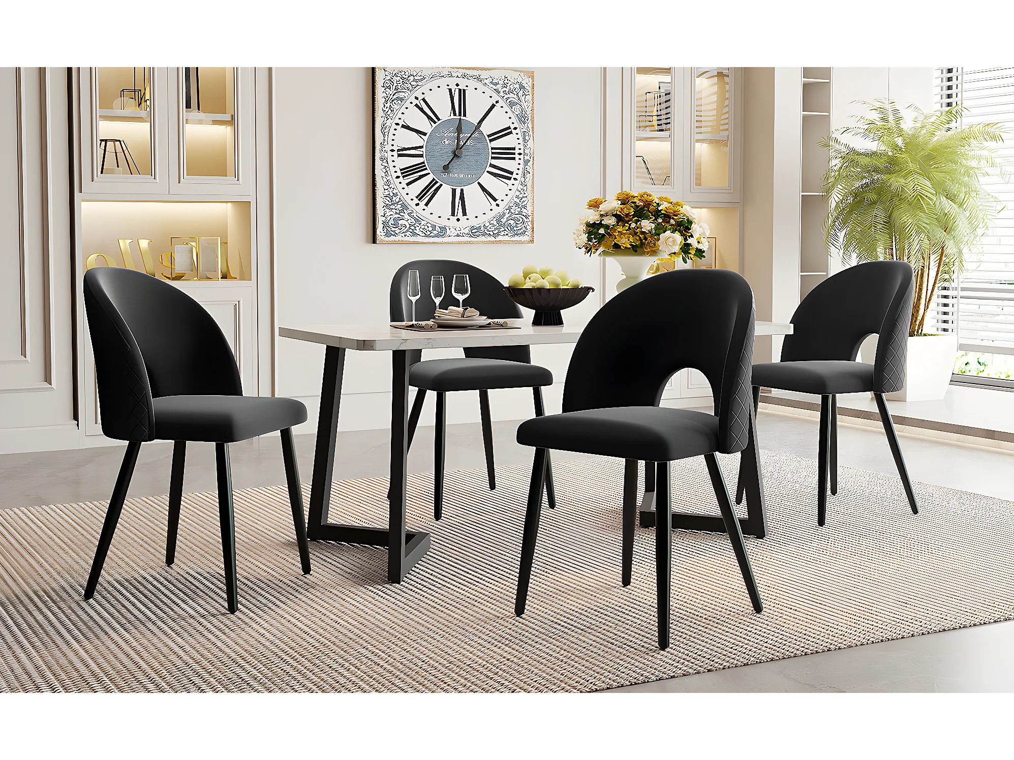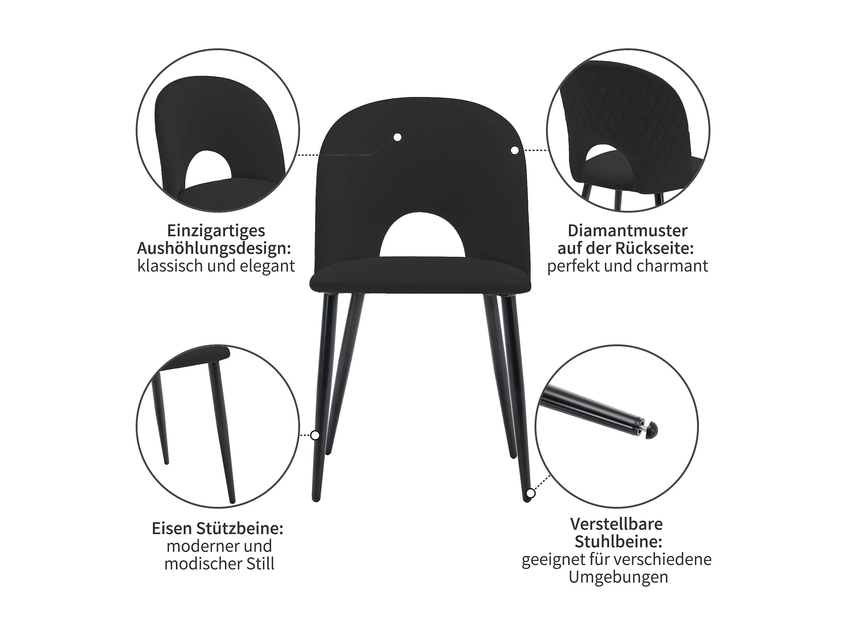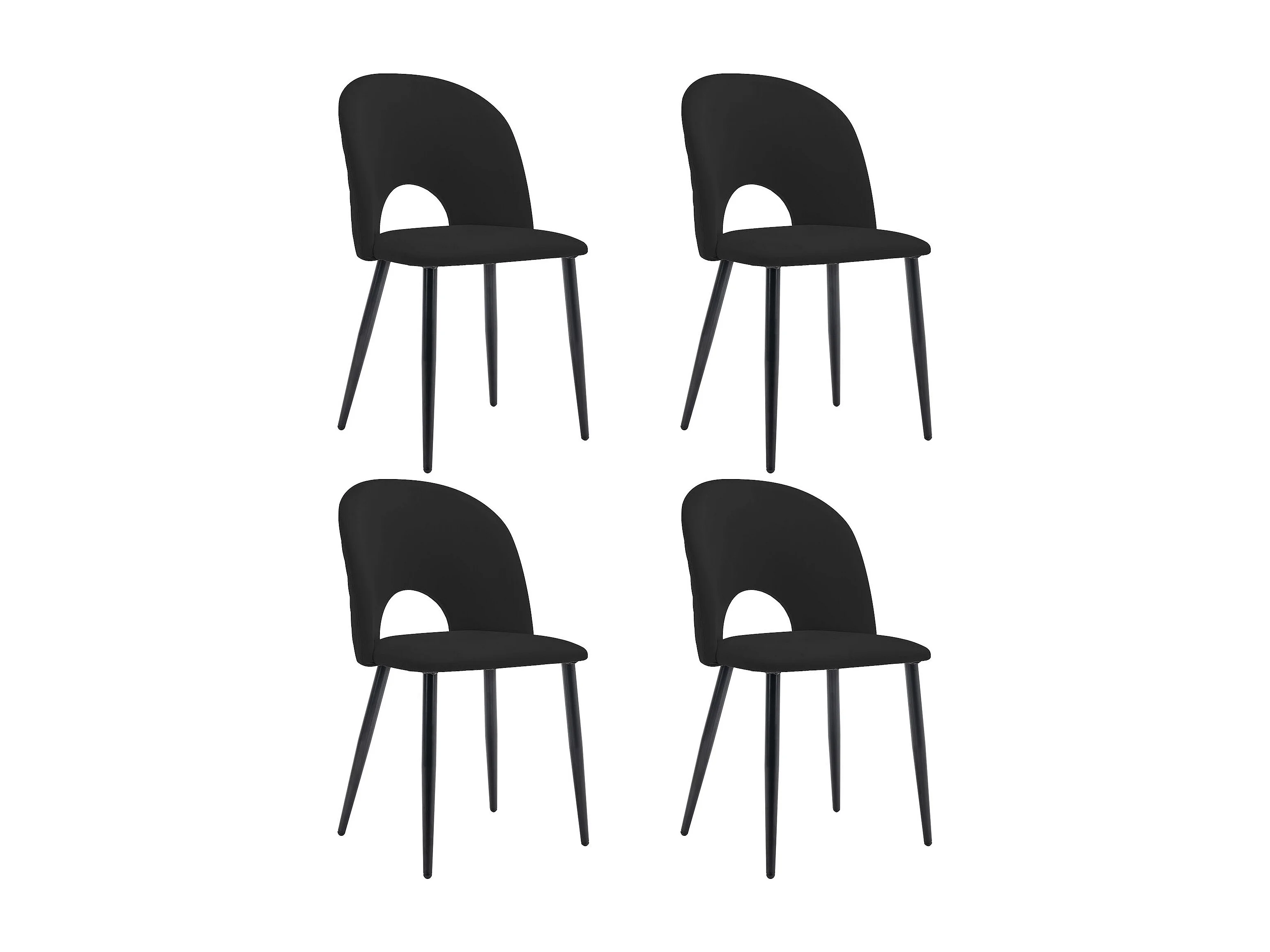 Lot de 4 chaises en velours - pieds réglables en métal - avec dossier - noir