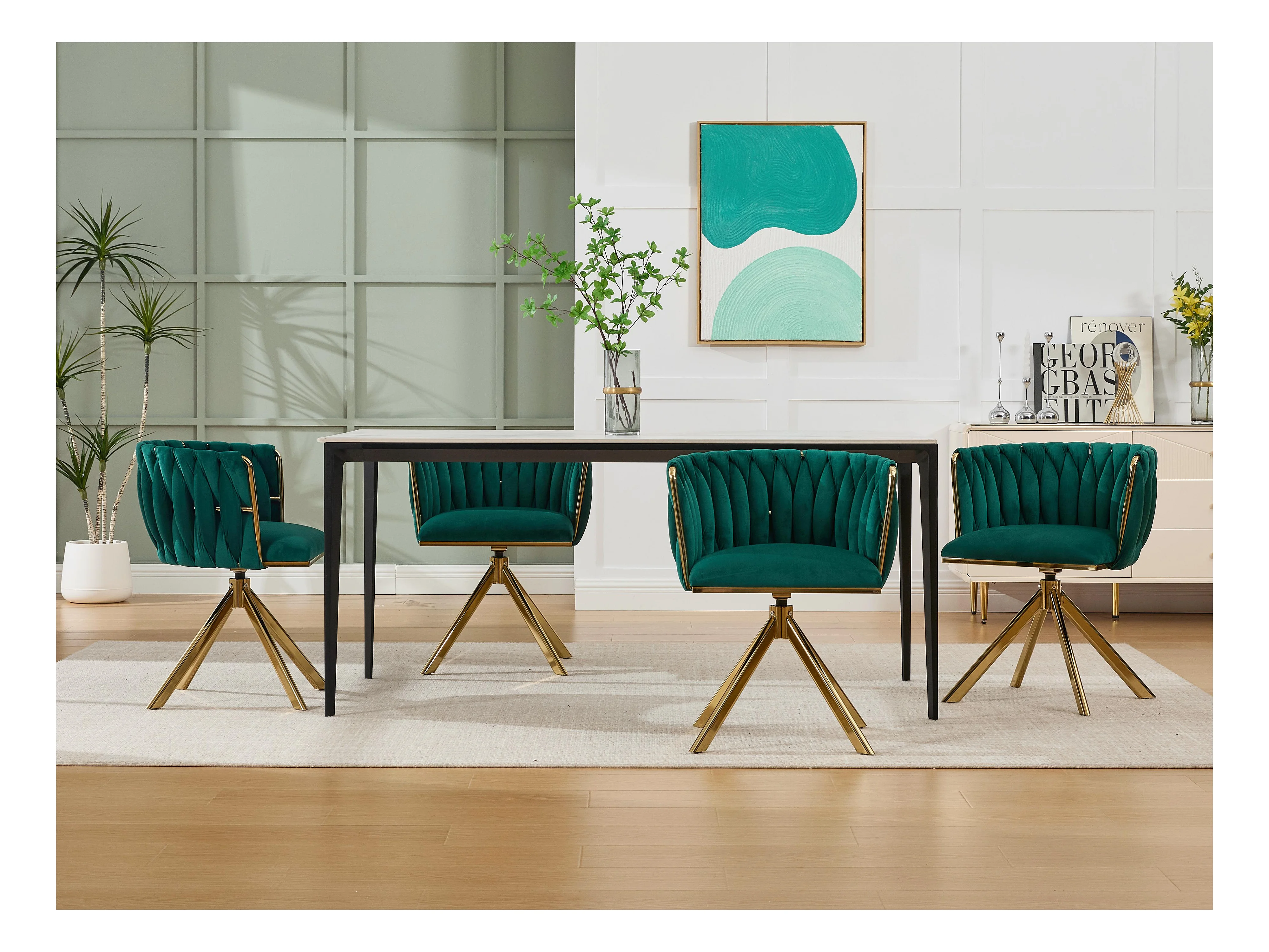 Lot de 4 Chaises pivotante vertes - Chaise coquillage avec pieds en métal doré - Style contemporain