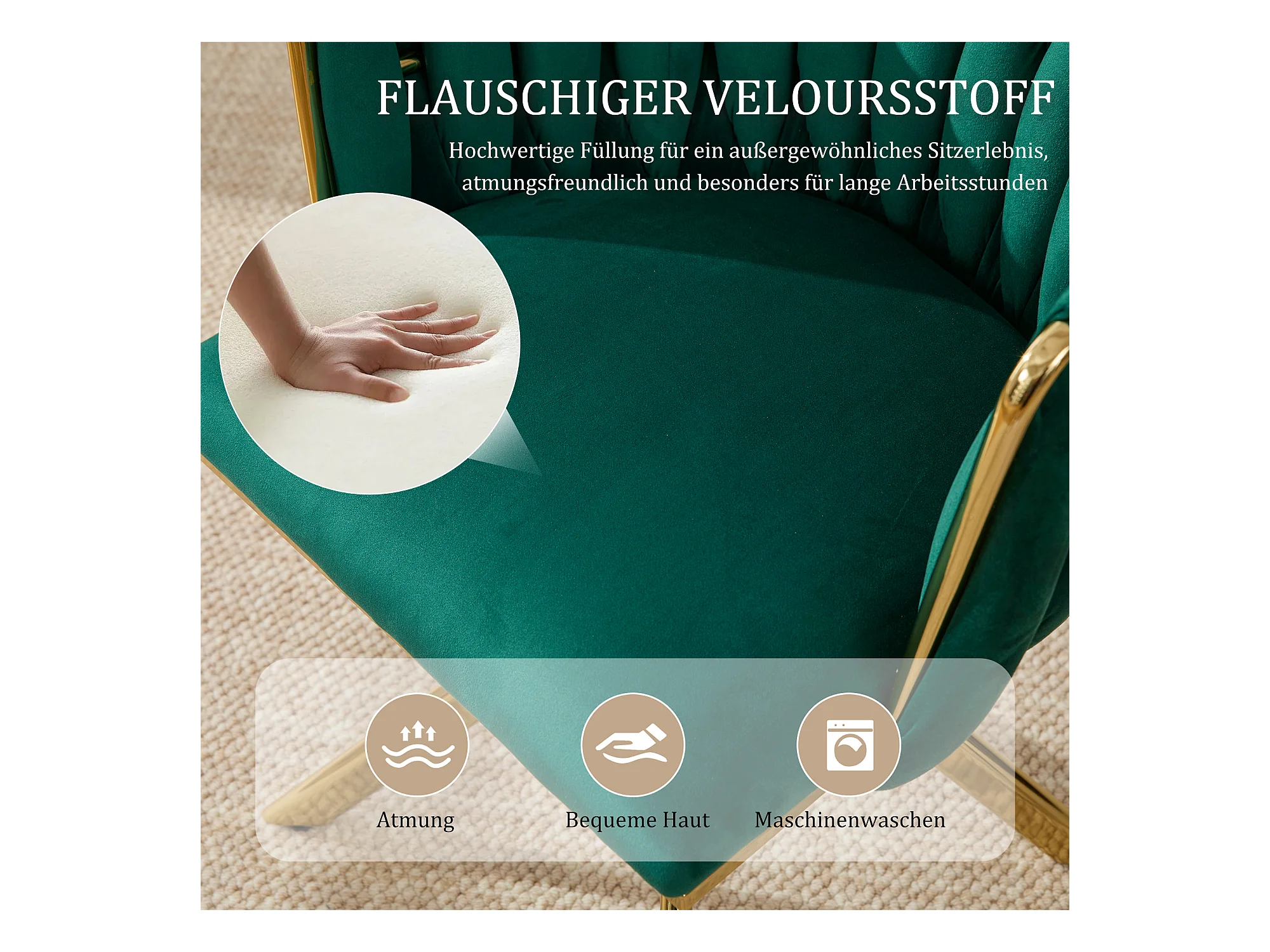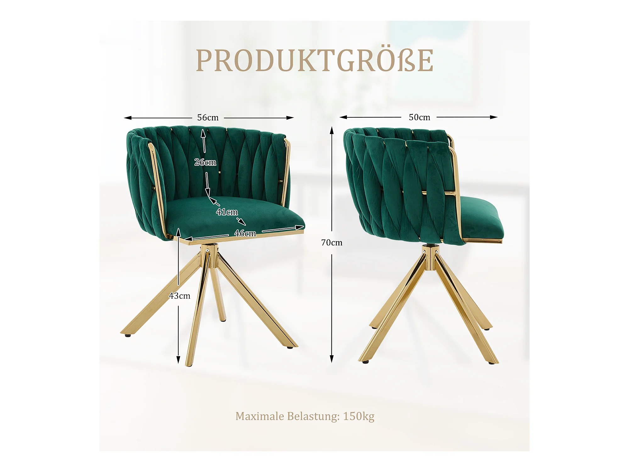 Lot de 4 chaises de salle à manger - 56 x 56 x 76 cm - avec accoudoirs et pieds en métal doré - velours - vert