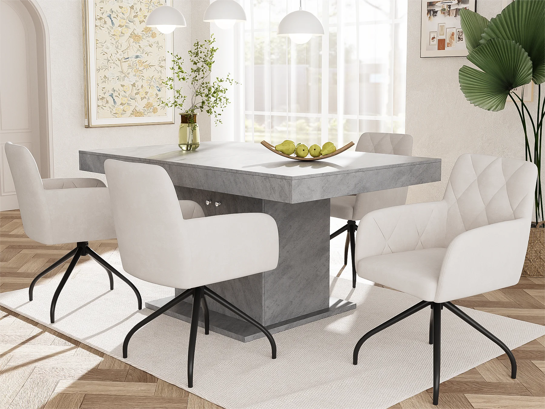 Lot de 4 Chaises pivotantes à 360° - tissu en velours - dossier à de motif losange - Beige
