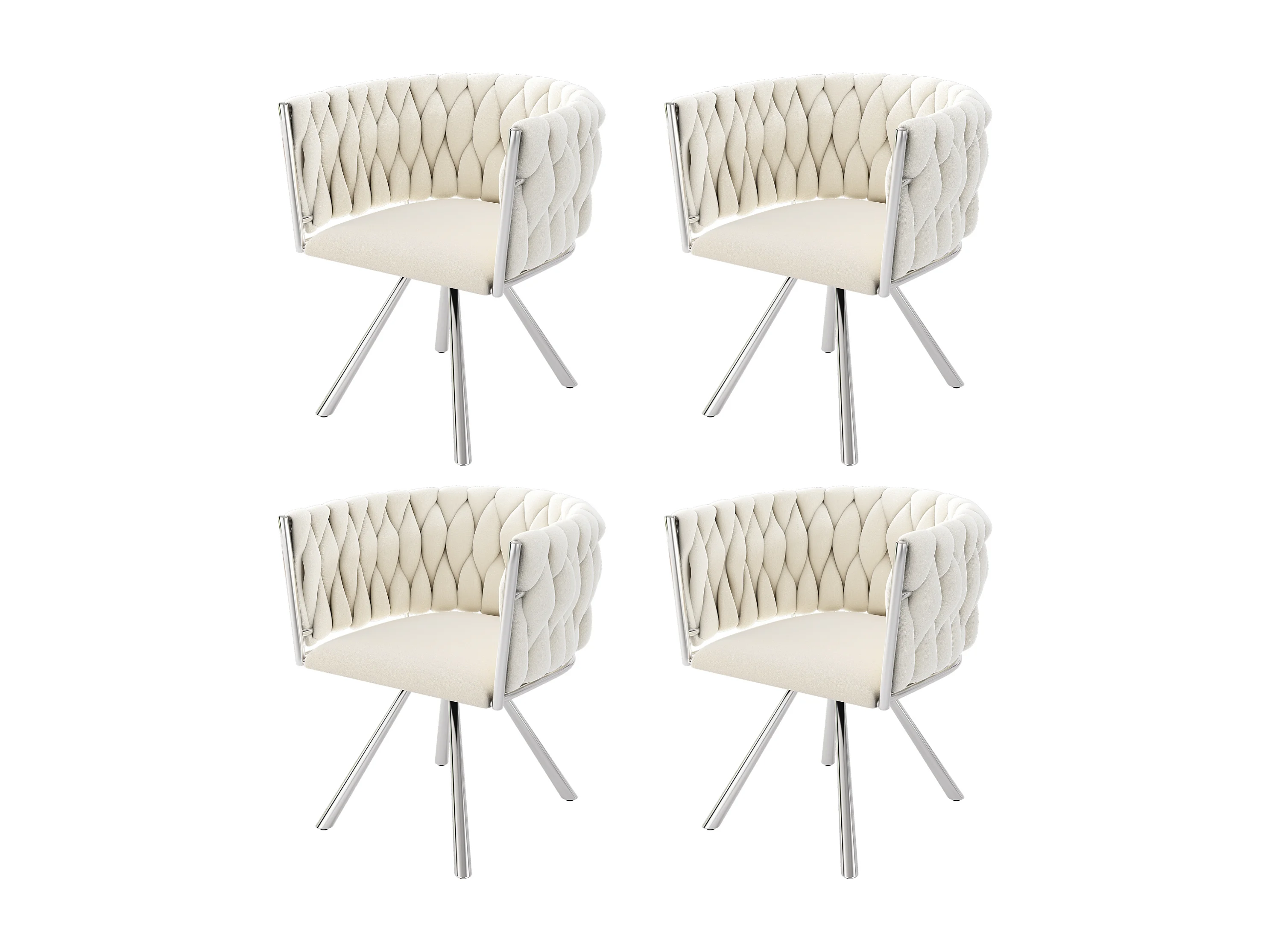 Lot de 4 chaises pivotantes avec accoudoirs, pieds métal argenté - velours beige