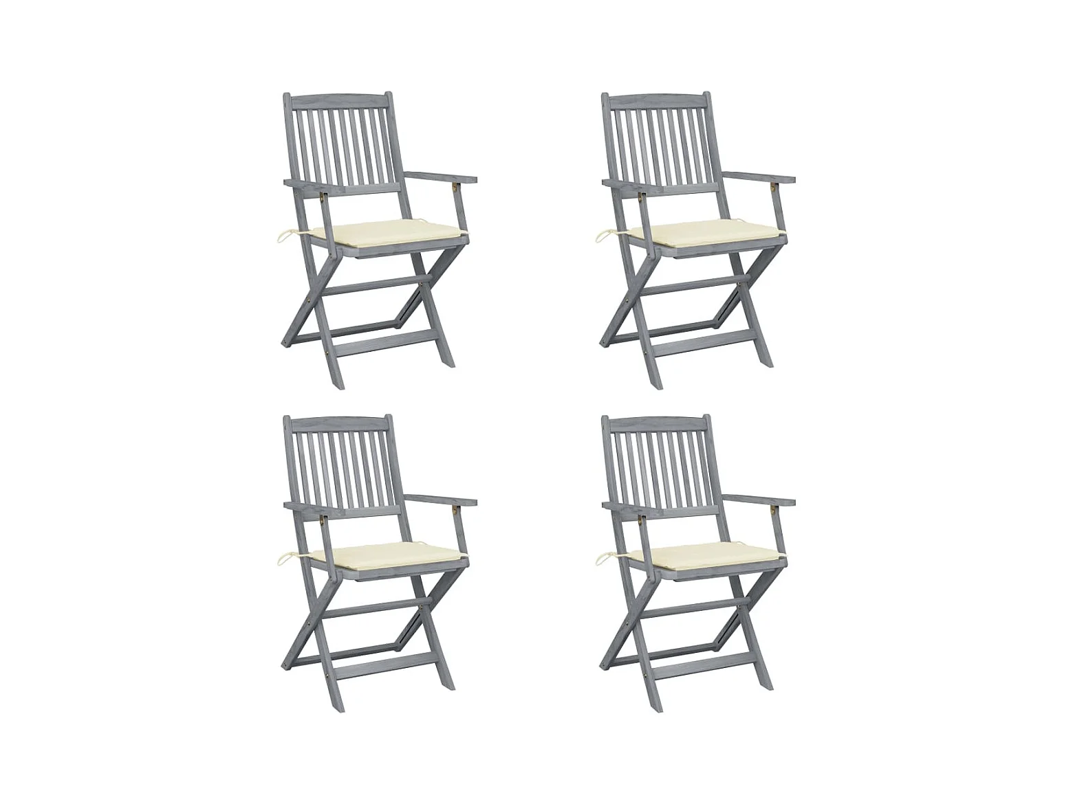 Lot de 4 Chaises pliables de jardin avec coussins Bois d'acacia FR79681