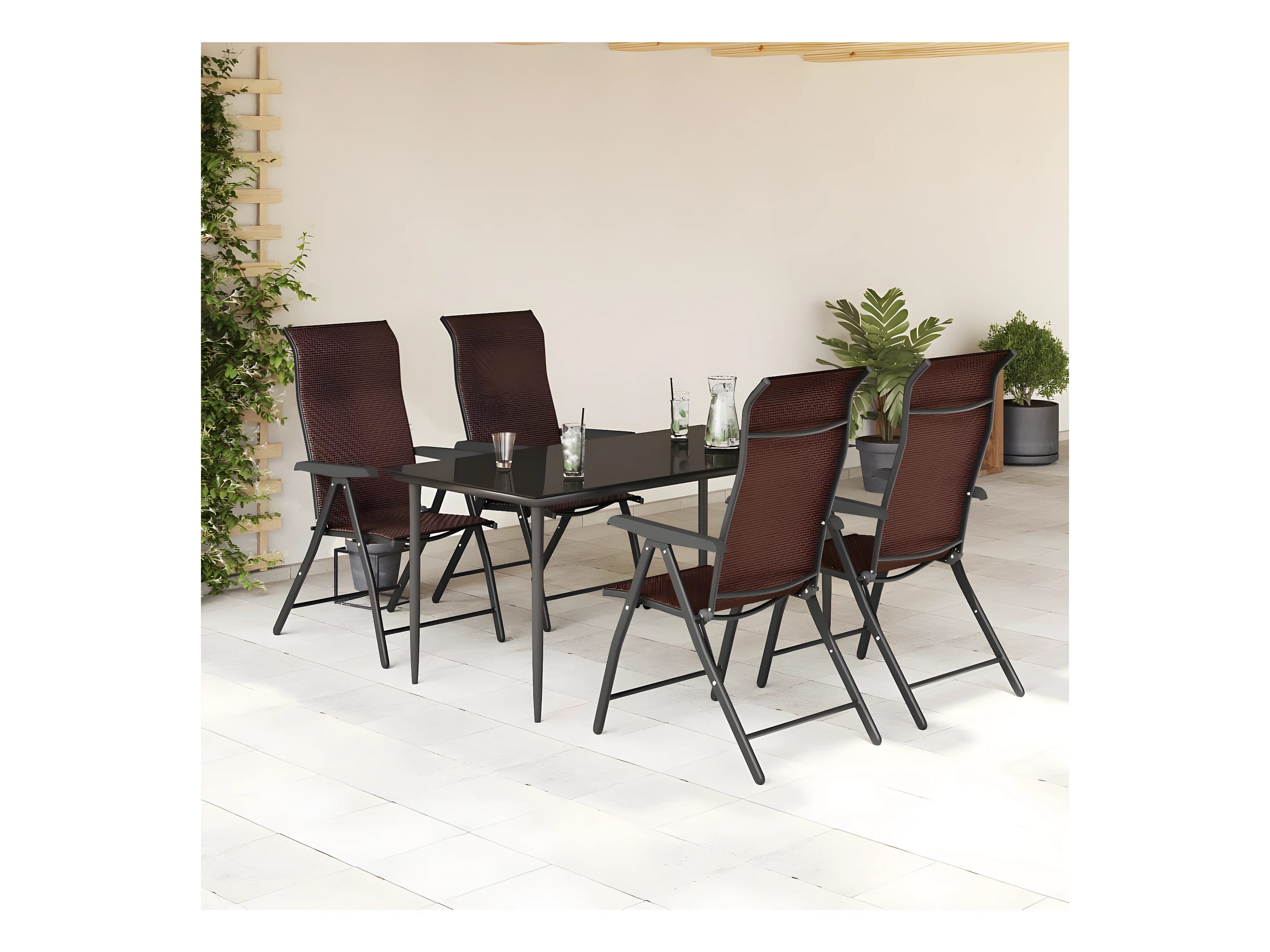 Lot de 4 Chaises pliables de jardin marron résine tressée FR86590