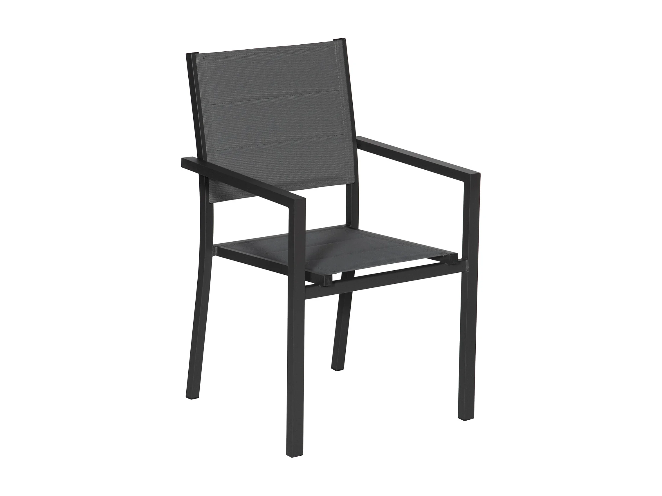 Lot de 4 chaises rembourrées en aluminium anthracite - textilène gris - HAPPY GARDEN