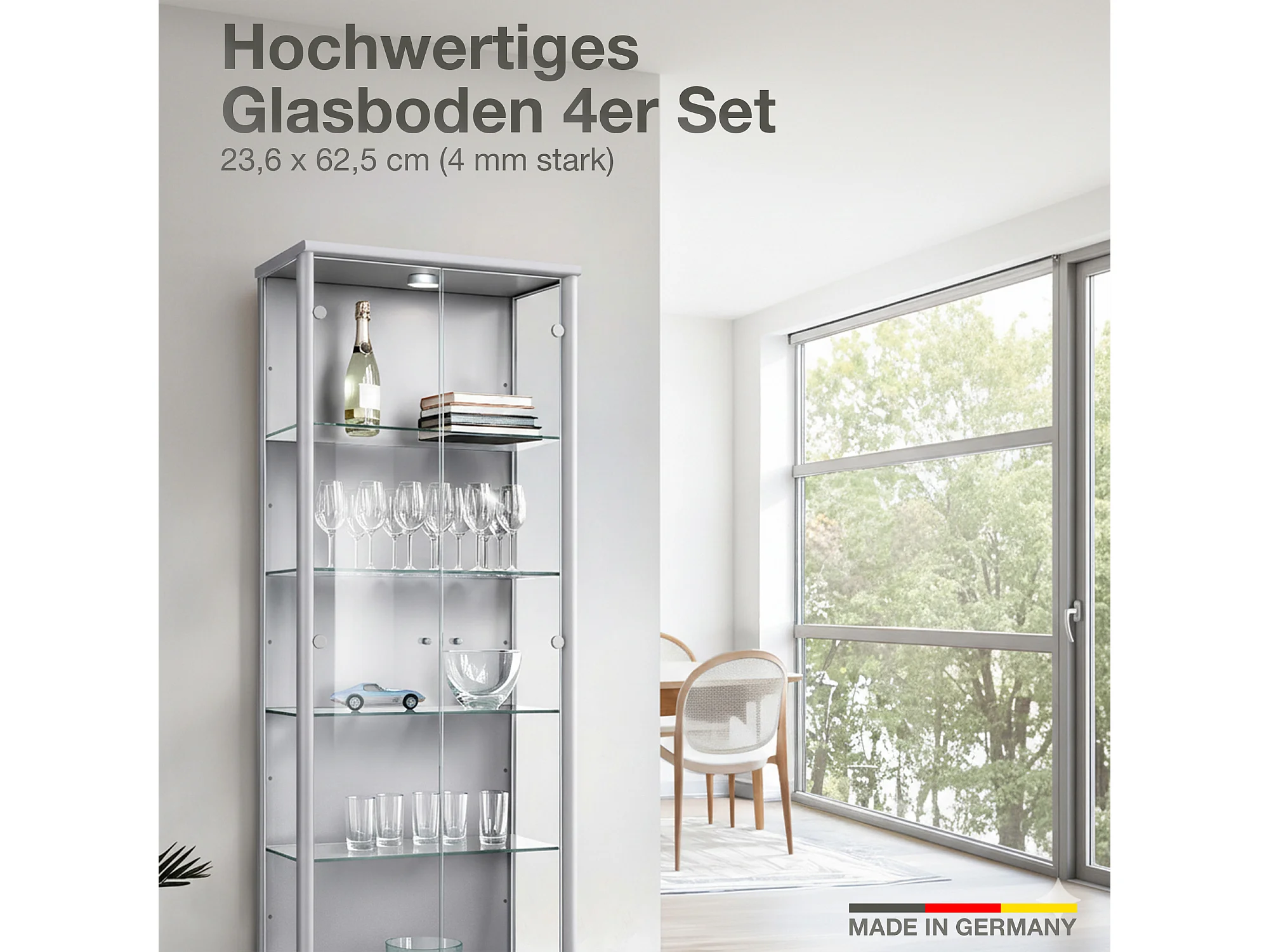 Lot de 4 étagères en verre - Transparentes - Pour vitrines sur pied avec 1 porte