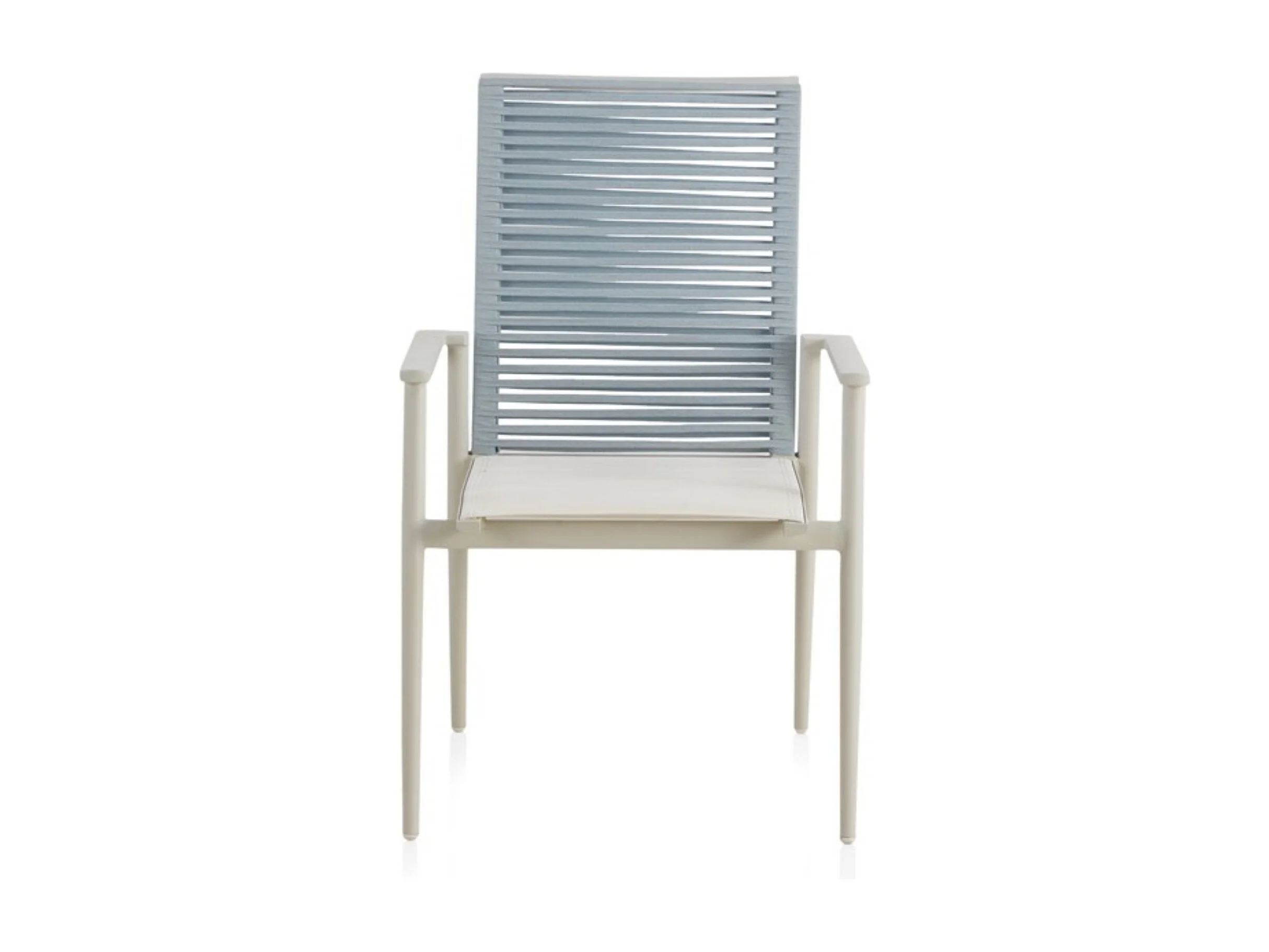 Lot de 4 fauteuils en aluminium blanc avec dossier en cordage tressé bleu