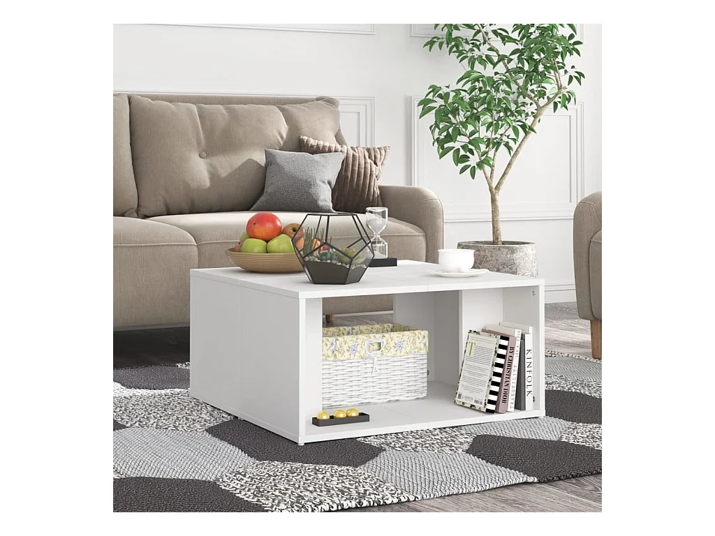Table basse blanc 59,5x59,5x40 cm bois d'ingénierie OFR44209 BonneVie Meuble