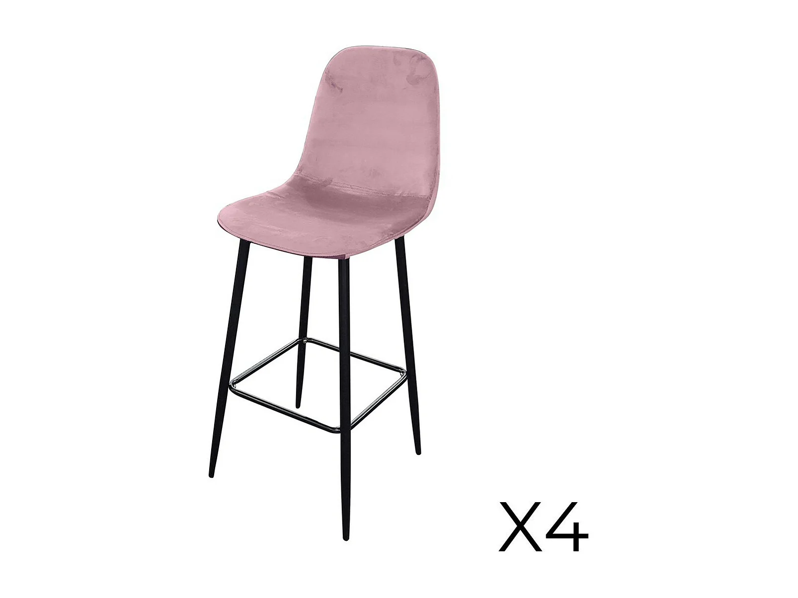 Lot de 4 tabourets LOLY, assise et dossier en velours rose, structure en métal noir