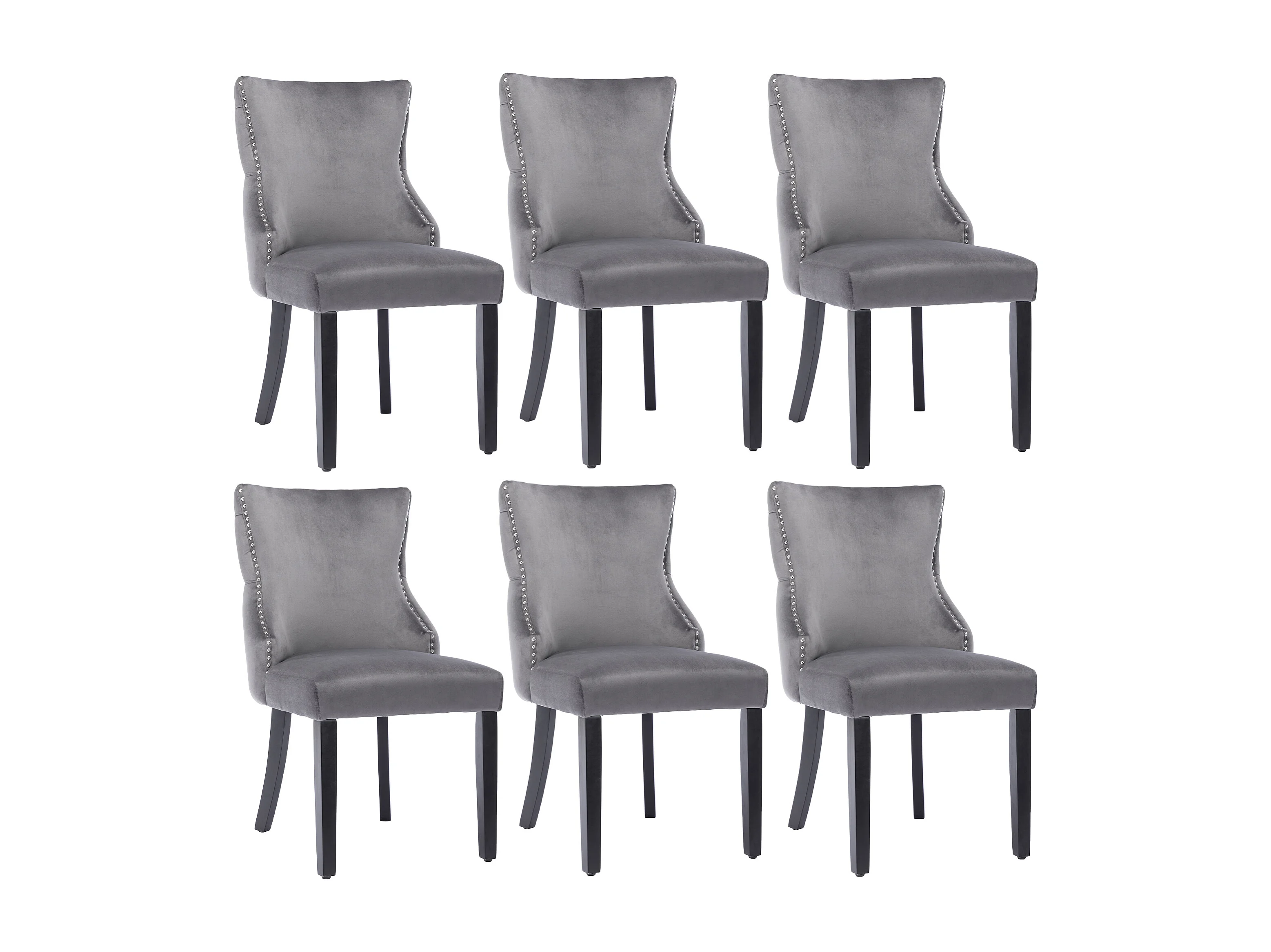 Lot de 6 chaises 50x52x91 cm avec Tissu capitonné et structure en bois massif Matériau Velours en gris pour Salon et salle à manger
