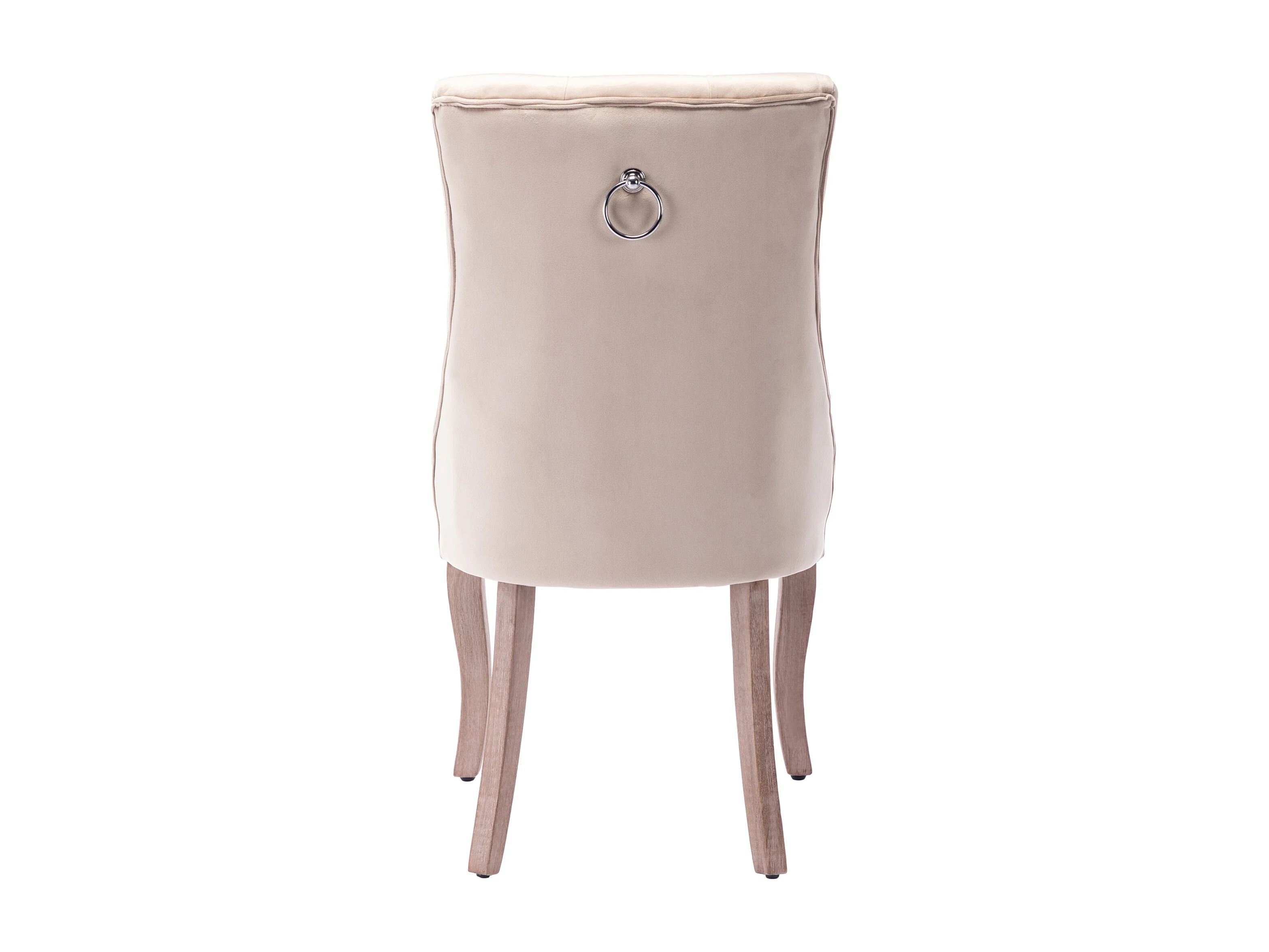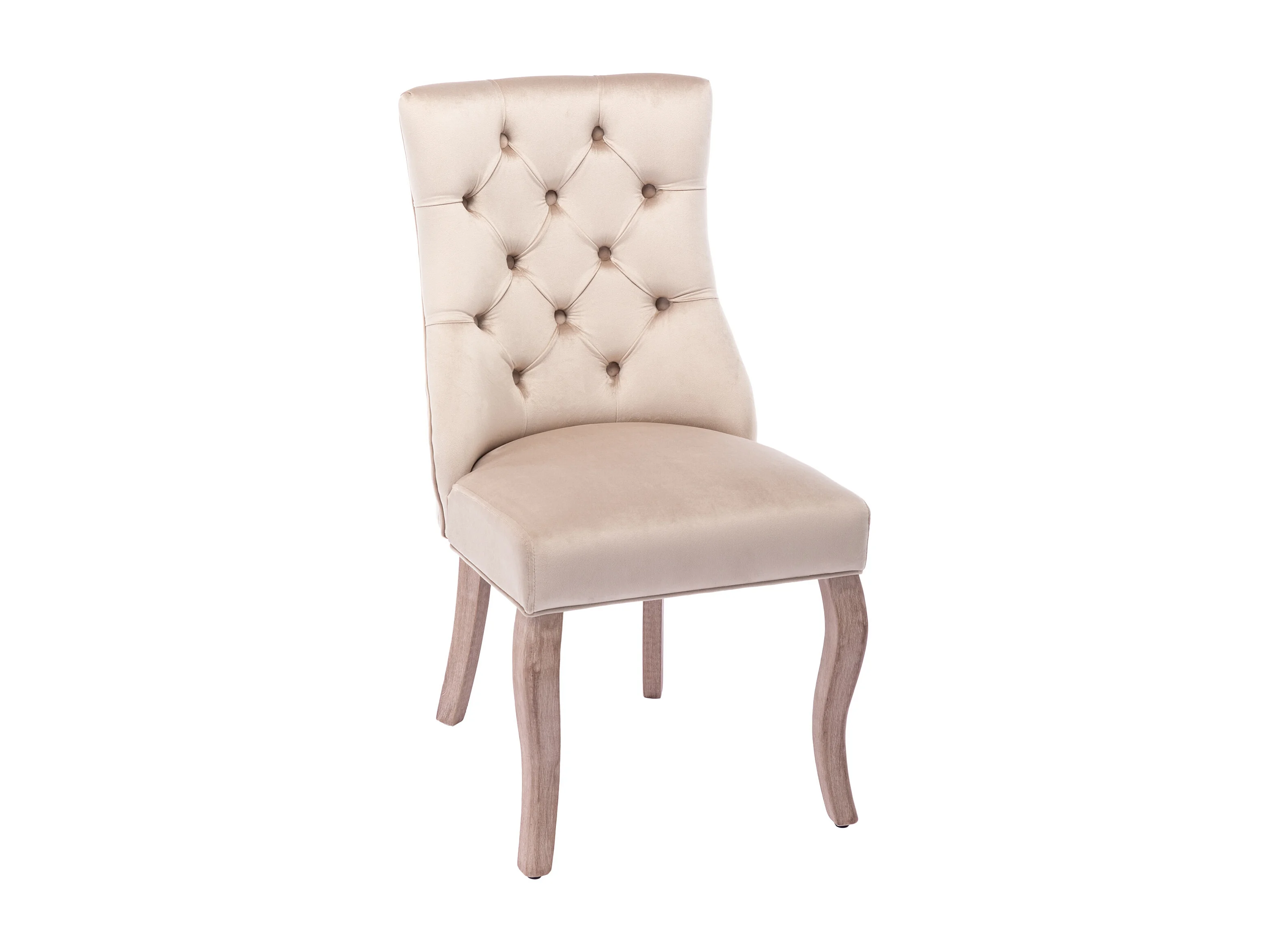 Lot de 6 chaises de salle à manger, dossier haut, capitonnage à boutons, pieds en bois, velours beige