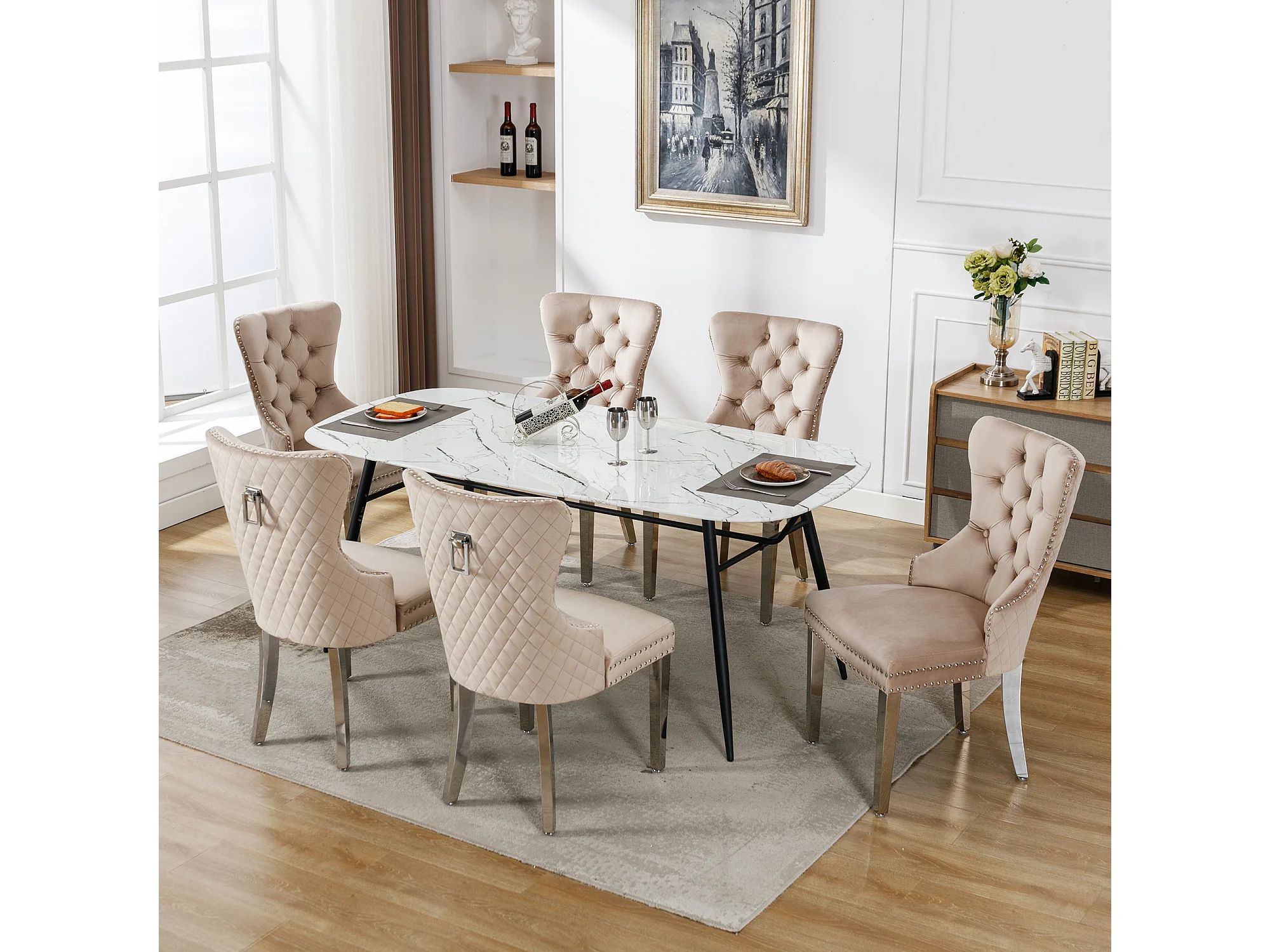 Lot de 6 chaises 53x62.5x94.5 cm avec Rembourrée Fermeture à boutons et ornée de rivets Matière velours en beige pour Salon et salle à manger