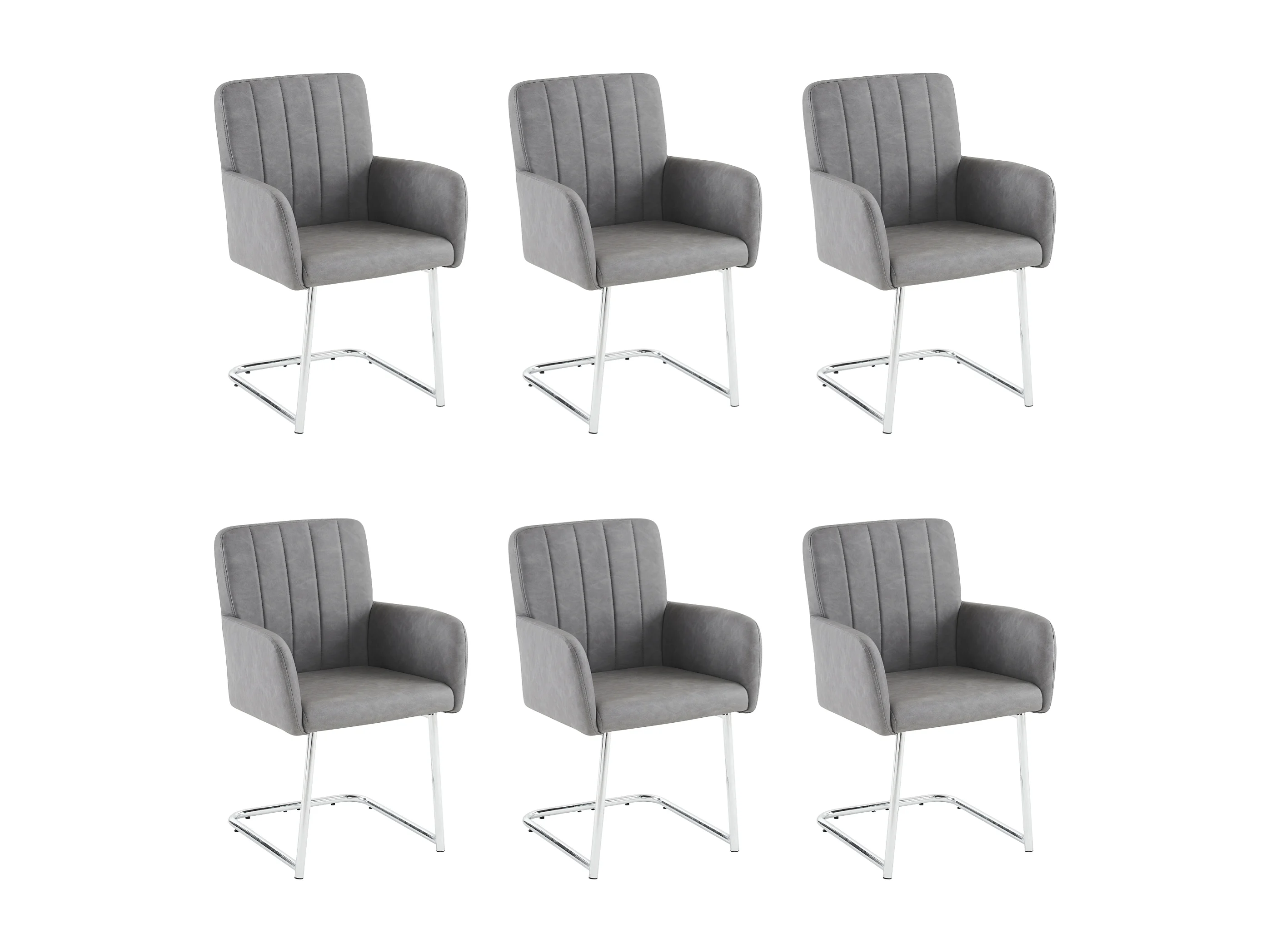 Lot de 6 chaises - 86 x 50 x 46 cm - fauteuil rembourré avec pieds en métal - pour chambre et bureau - cuir similaire -gris
