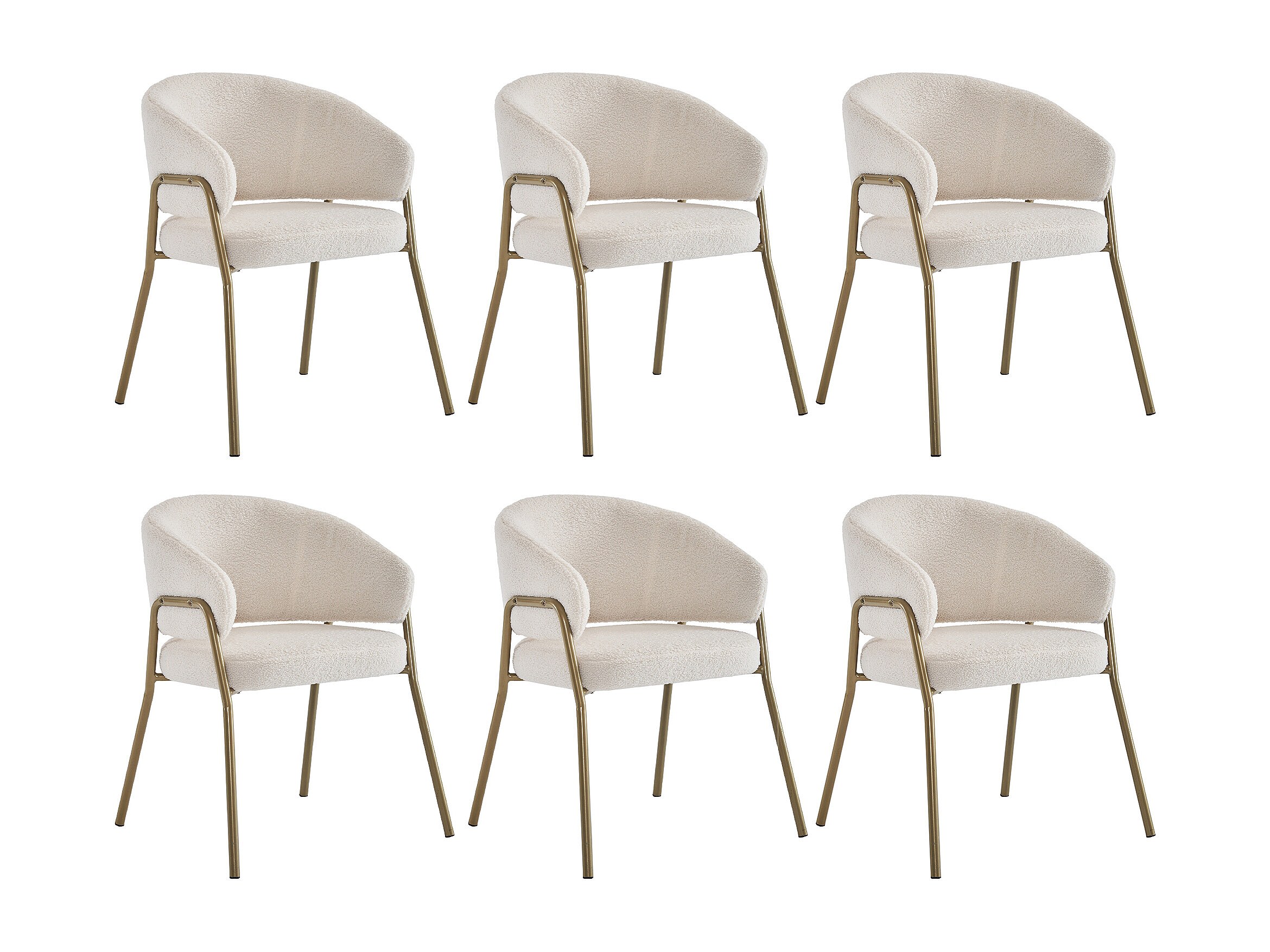 Lot de 6 chaises à manger en laine d'agneau avec accoudoirs et dossier - pieds en métal - blanc