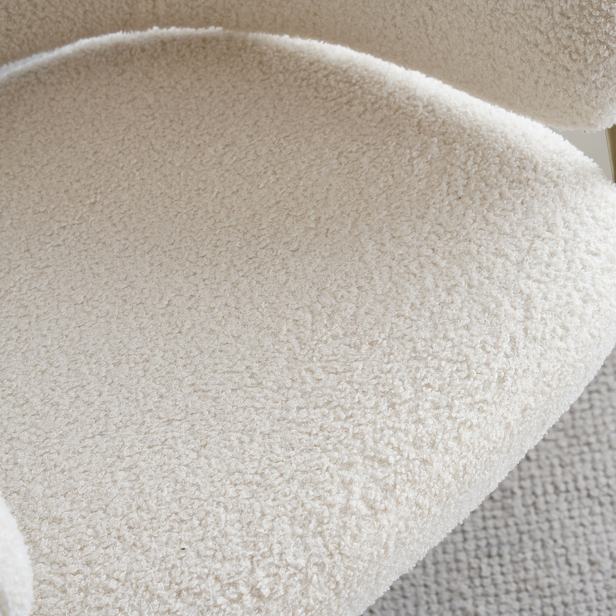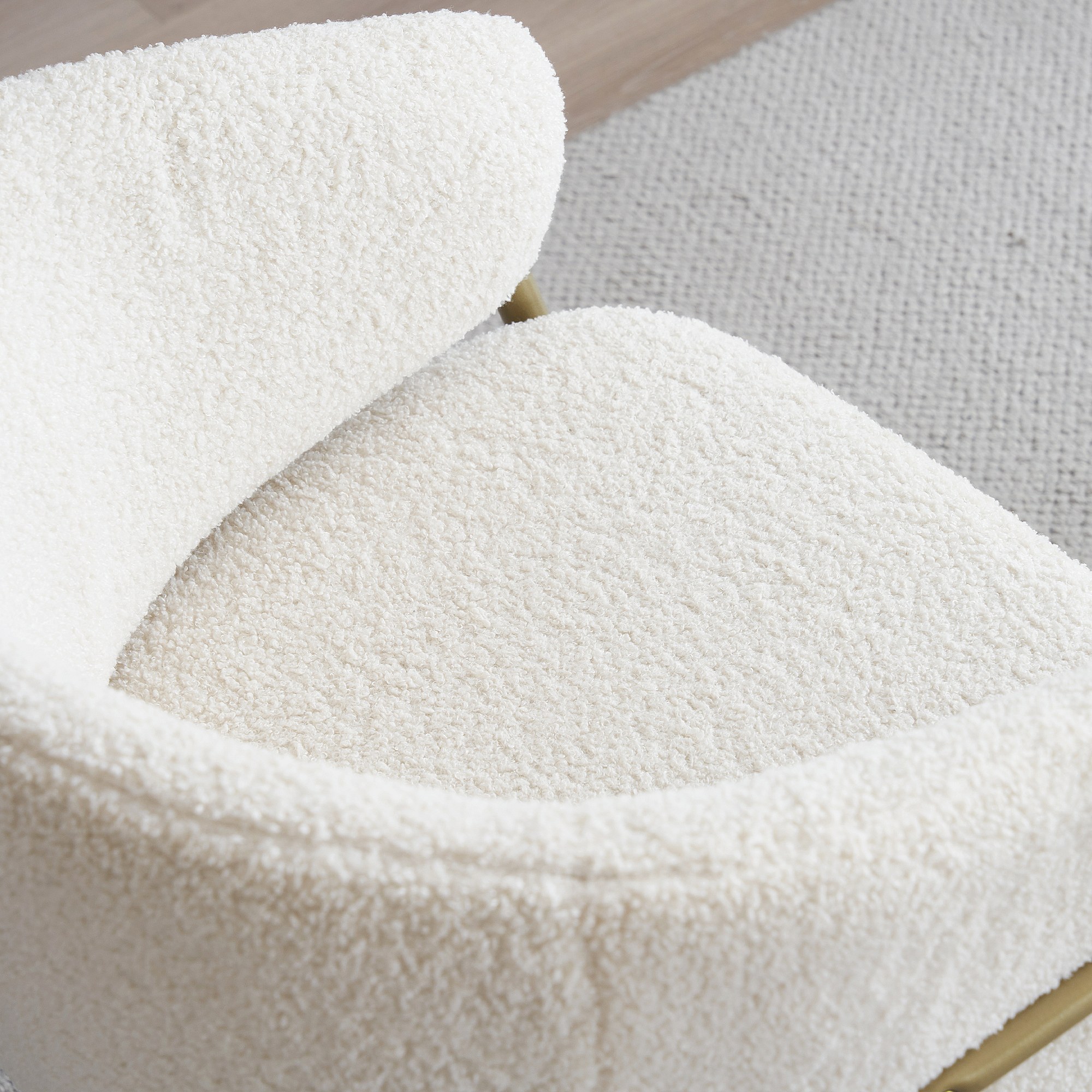 Chaises avec accoudoirs en Tissu pelucheux imitation laine blanc avec pieds en métal doré