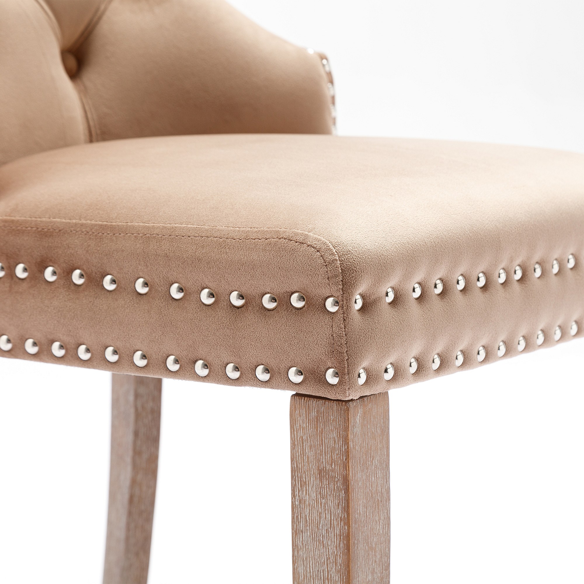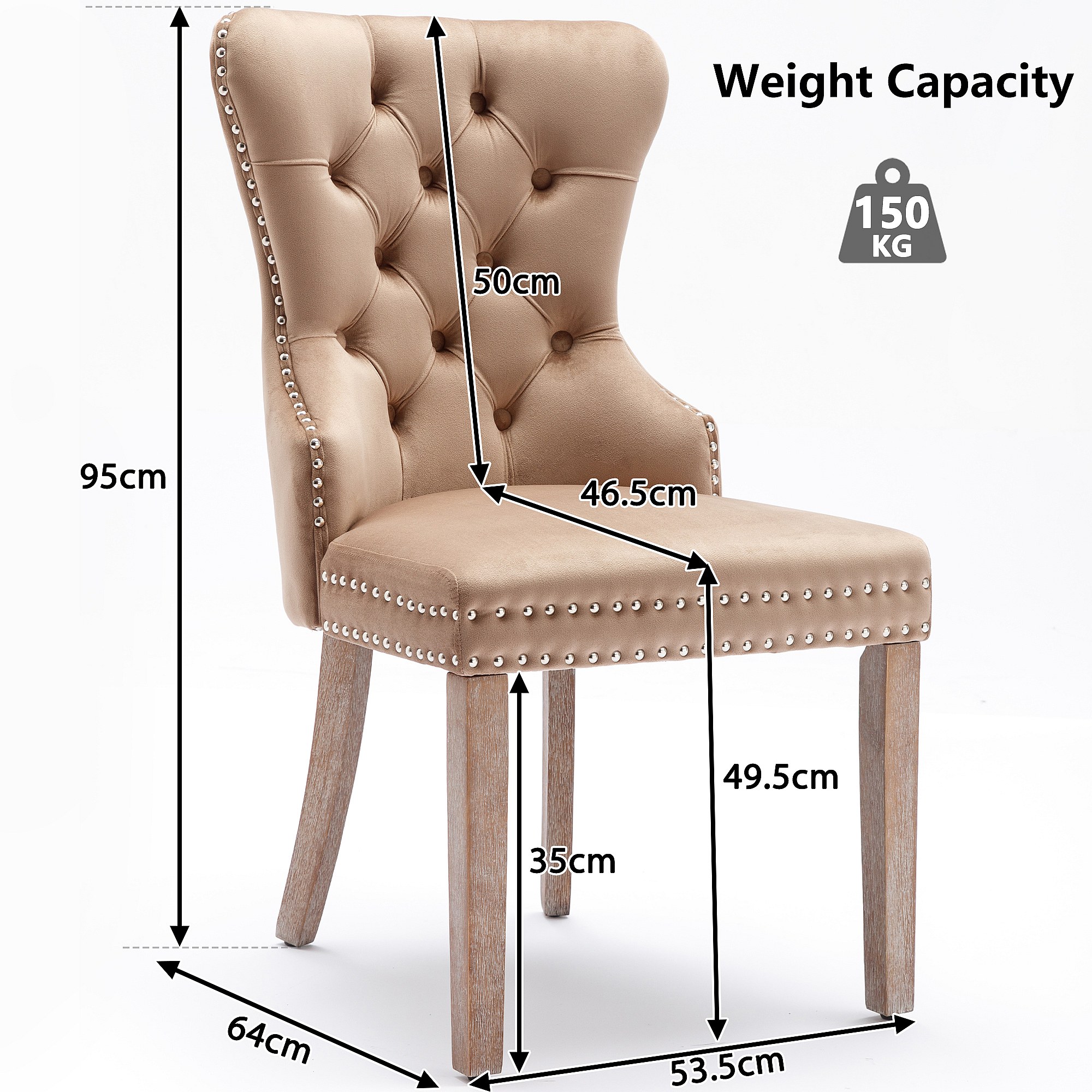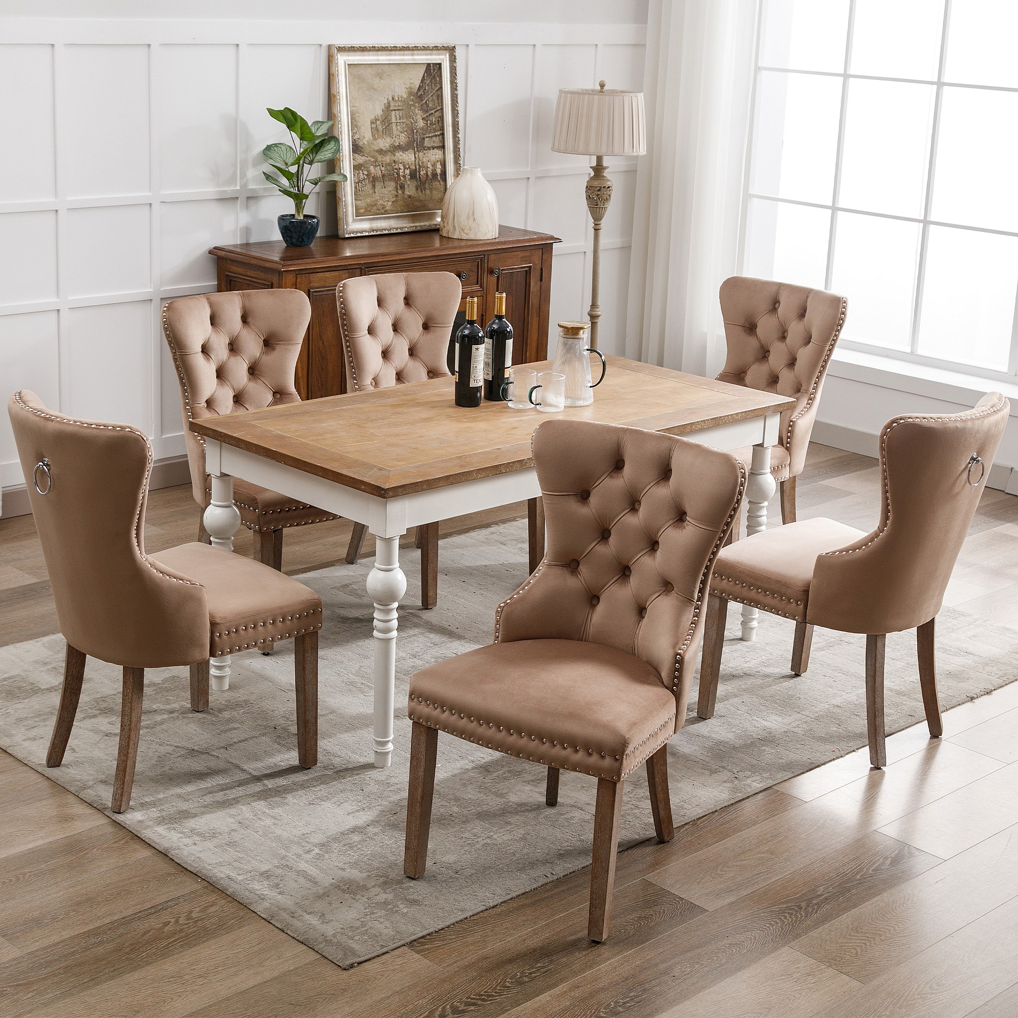 Lot de 6 chaises à manger en velours avec dossier - pieds en bois - marron clair