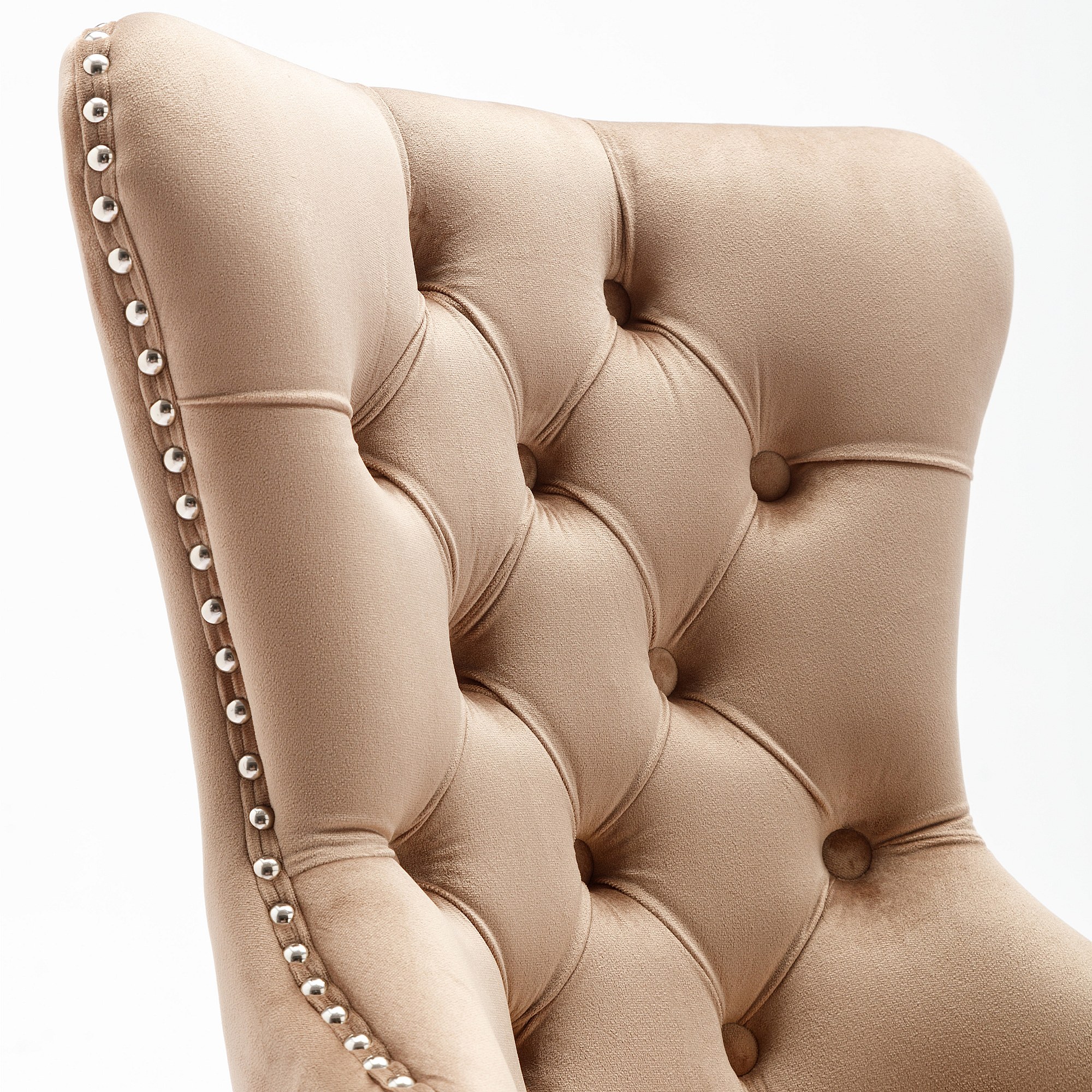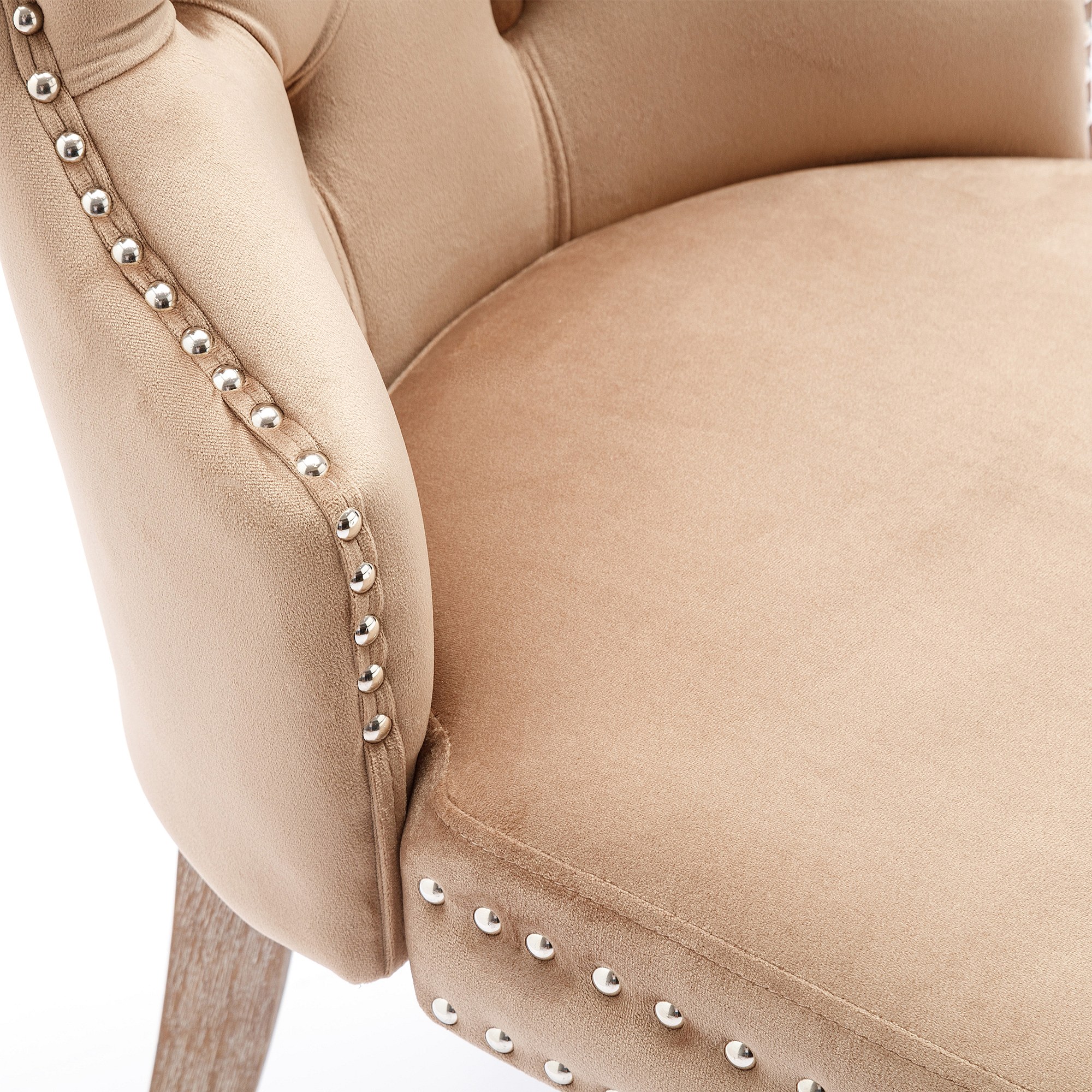 Lot de 2 chaises à manger en velours avec dossier - pieds en bois doré - beige