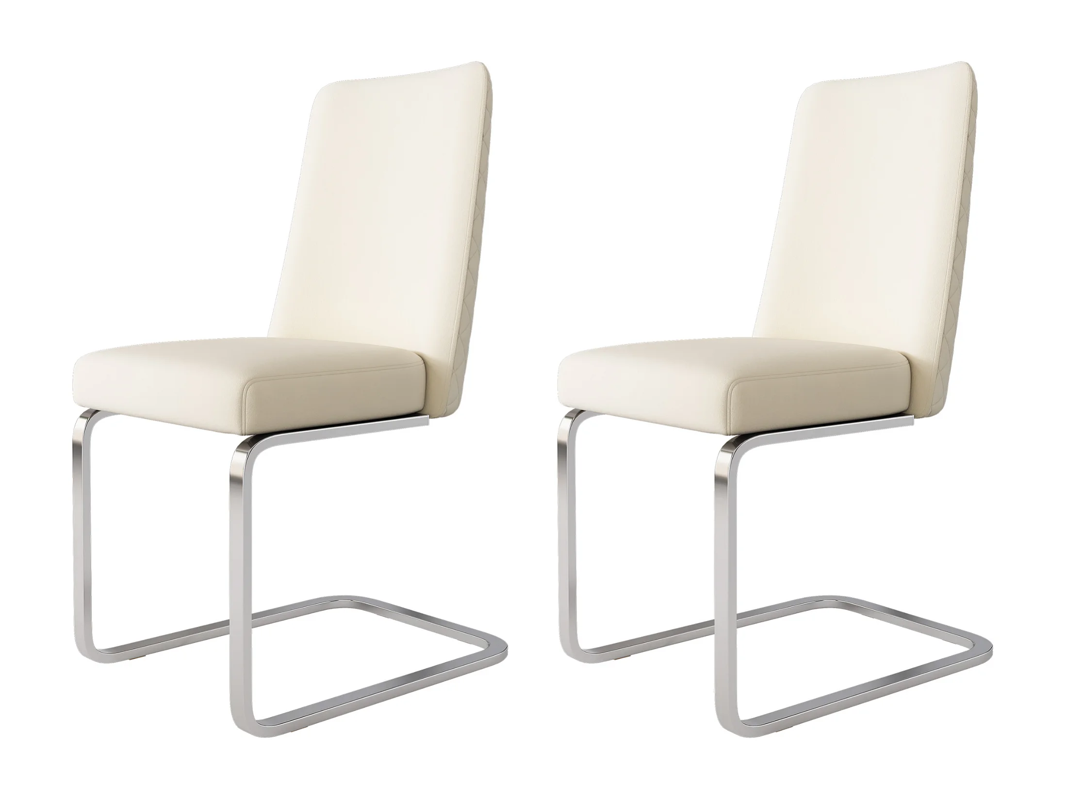 Lot de 6 Chaises cantilever en velours - dossier à motif de losange - piètement en métal argenté - Beige