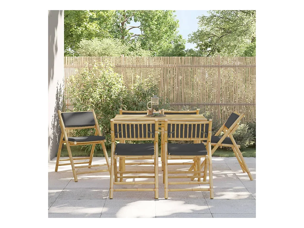 Lot de 6 Chaises de bistro pliantes coussins gris foncé bambou FR16937