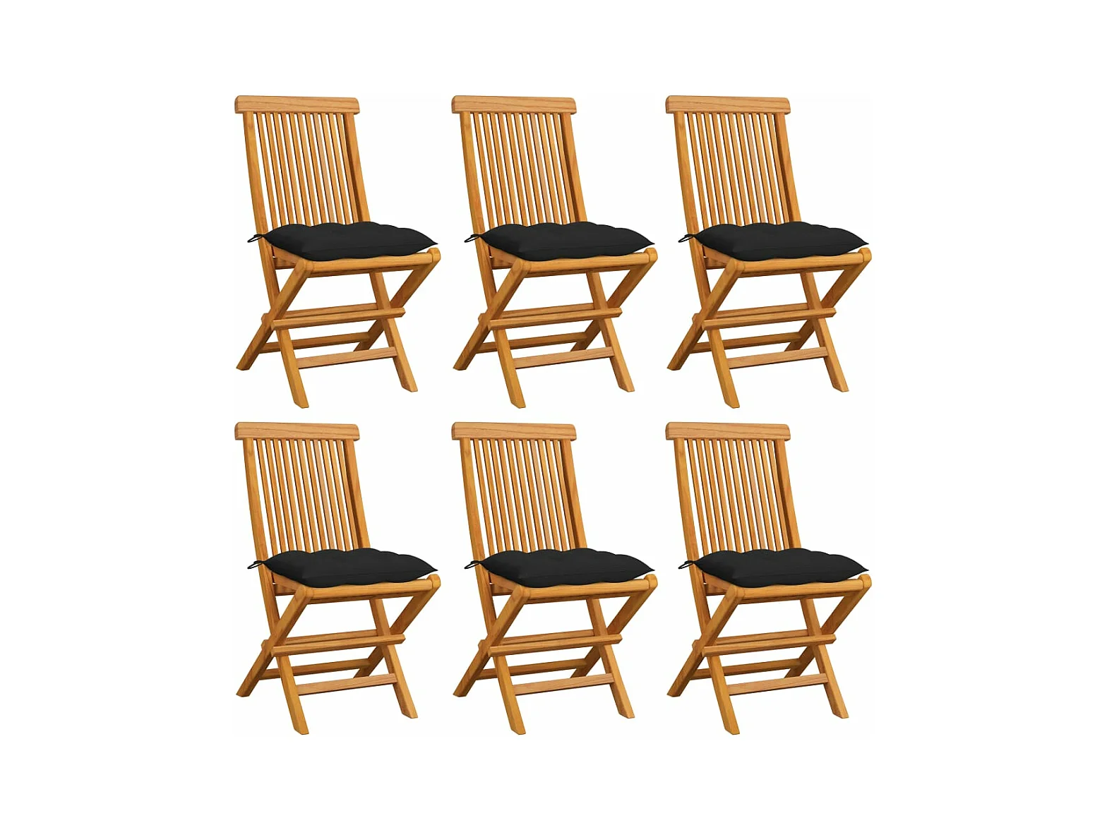 Lot de 6 Chaises de jardin avec coussins noir Bois de teck massif FR56885