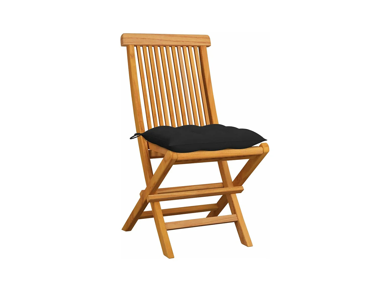 Lot de 2 Chaises de jardin et coussins noir Bois de teck massif FR40051