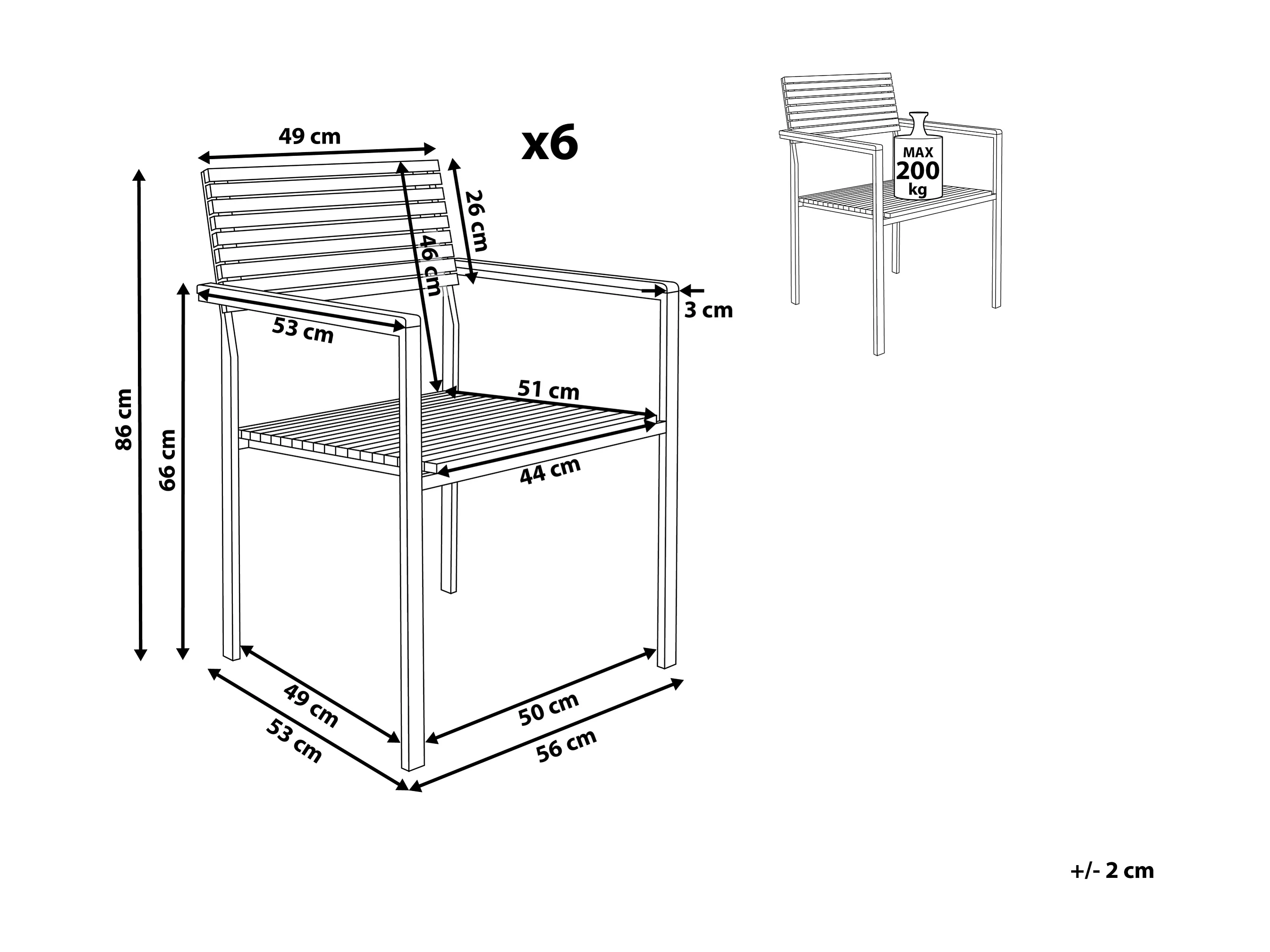 Lot de 6 chaises de jardin VIAREGGIO Teck certifié FSC® Marron
