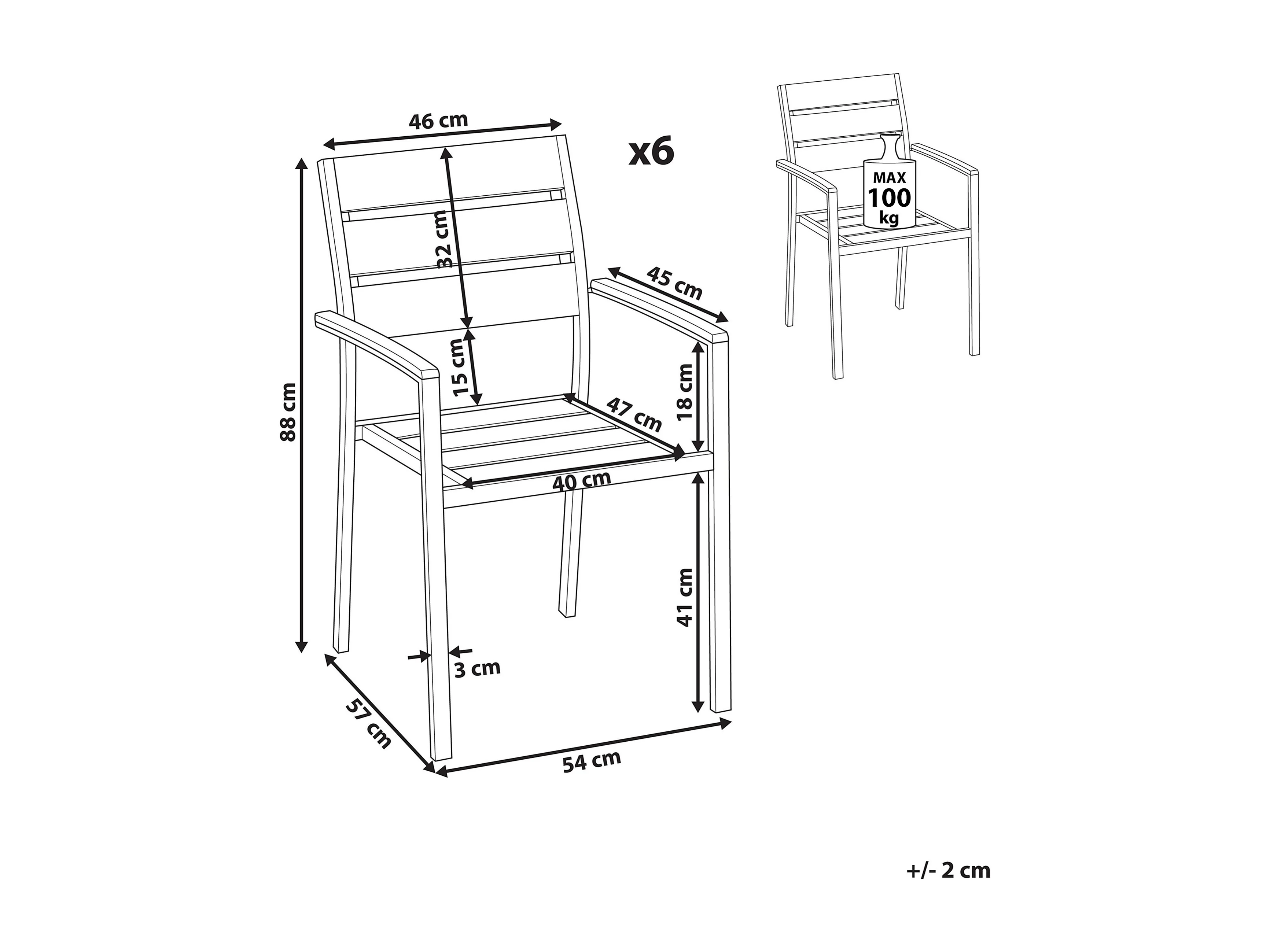 Lot de 6 chaises de jardin VERNIO Marron/noir