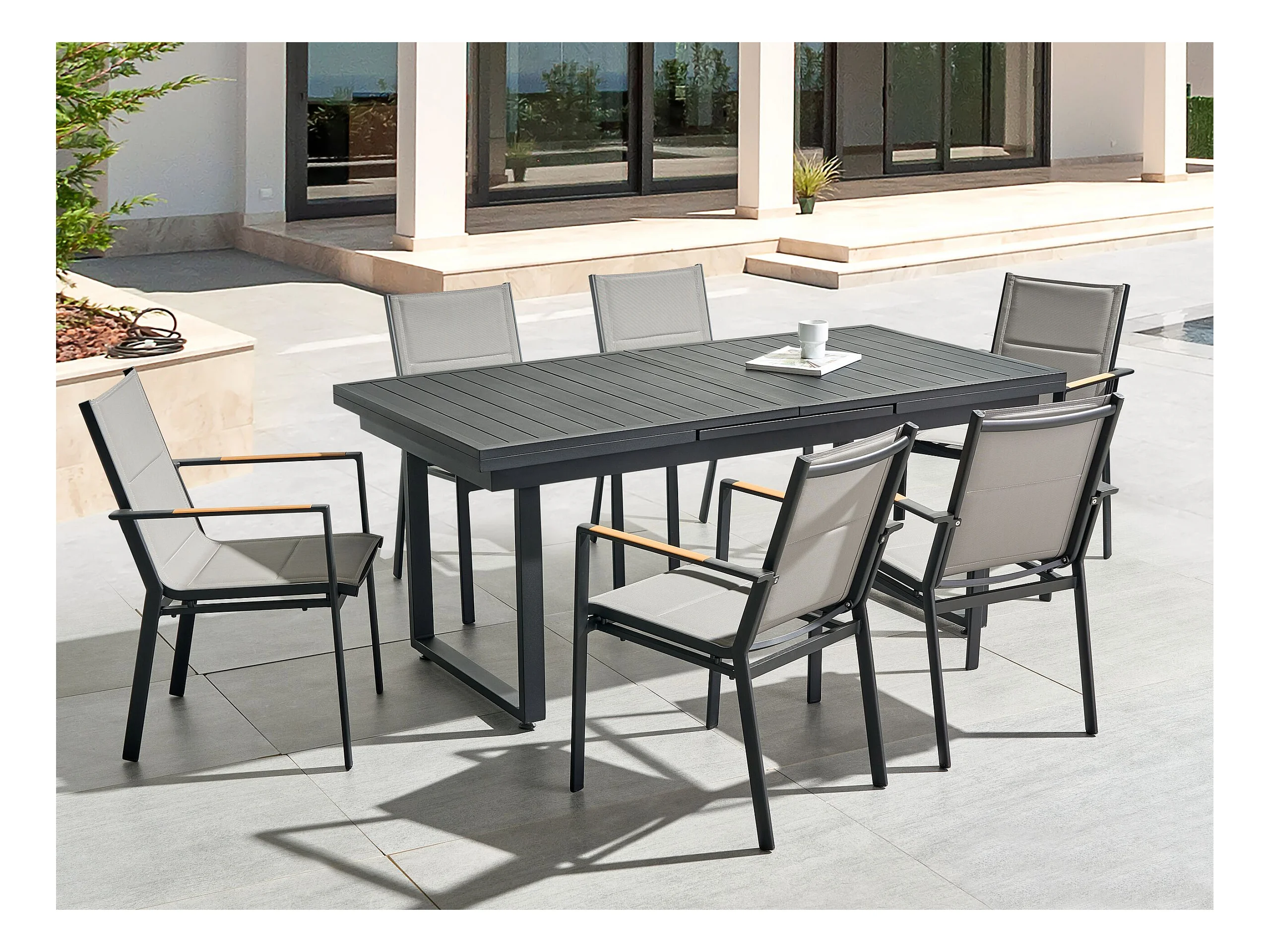 Chaise de terrasse avec accoudoirs en aluminium noire
