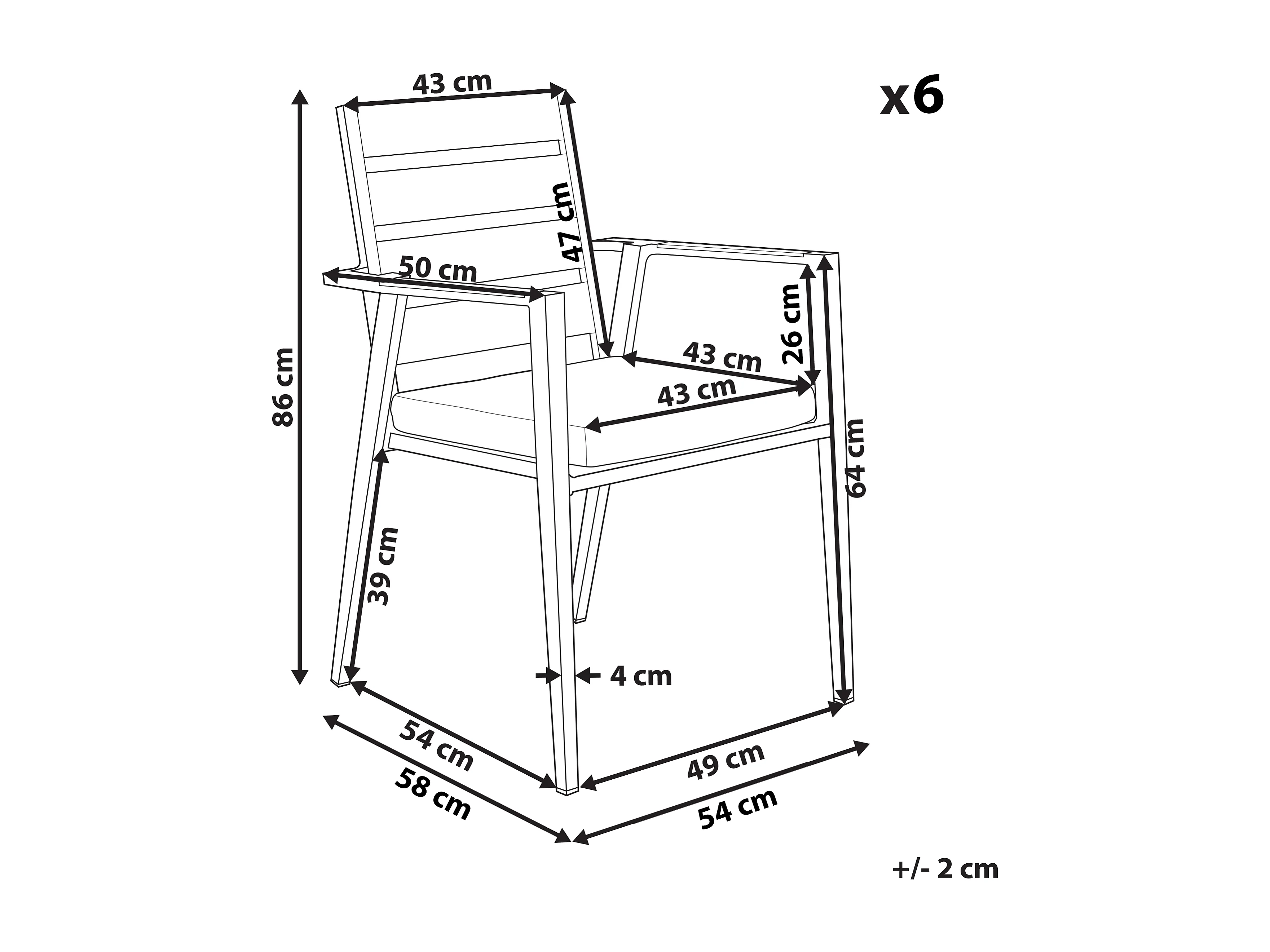 Lot de 6 chaises de jardin avec coussins TAVIANO Métal Noir