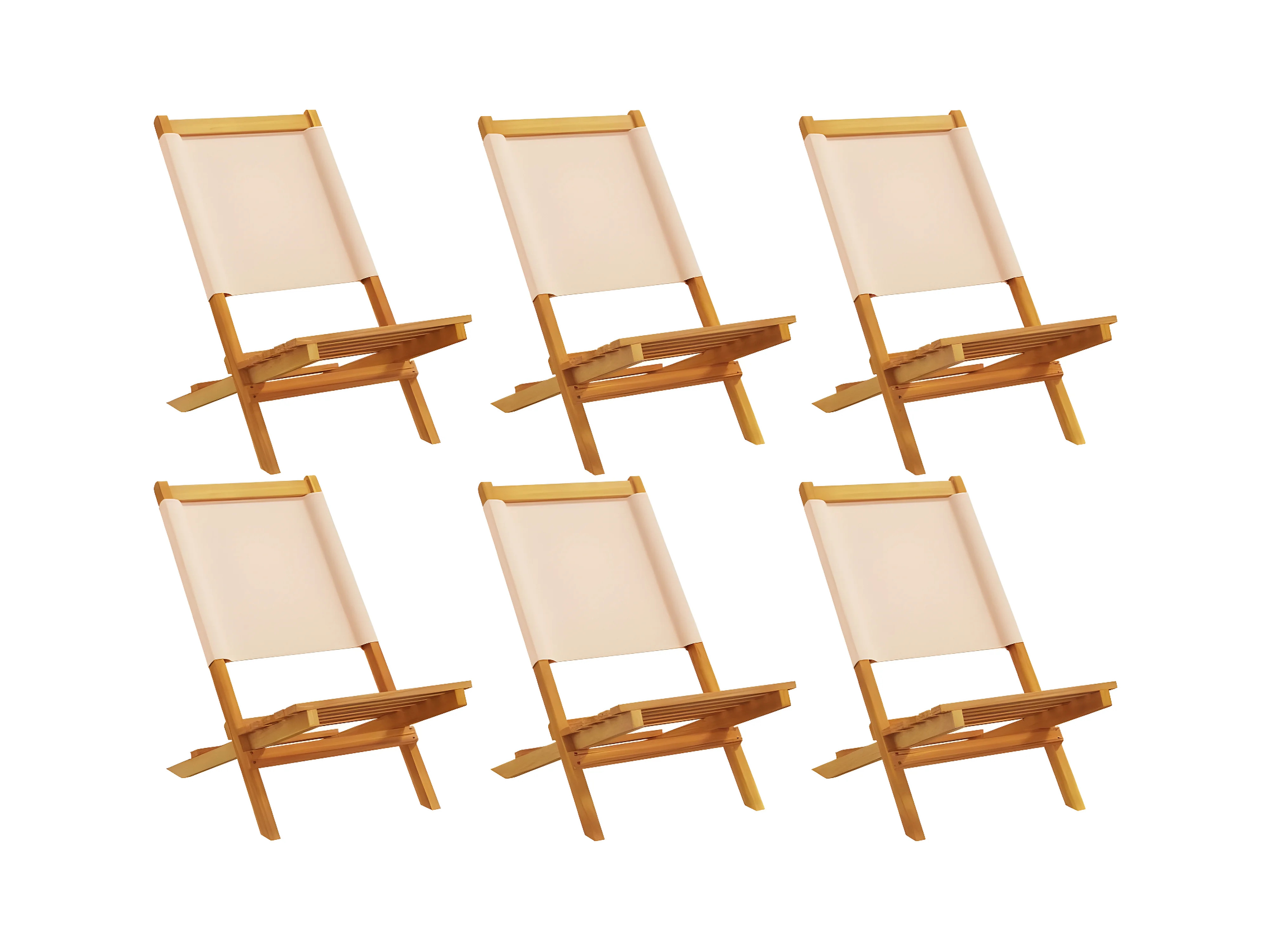 Lot de 6 Chaises de jardin pliantes beige tissu et bois massif FR72980