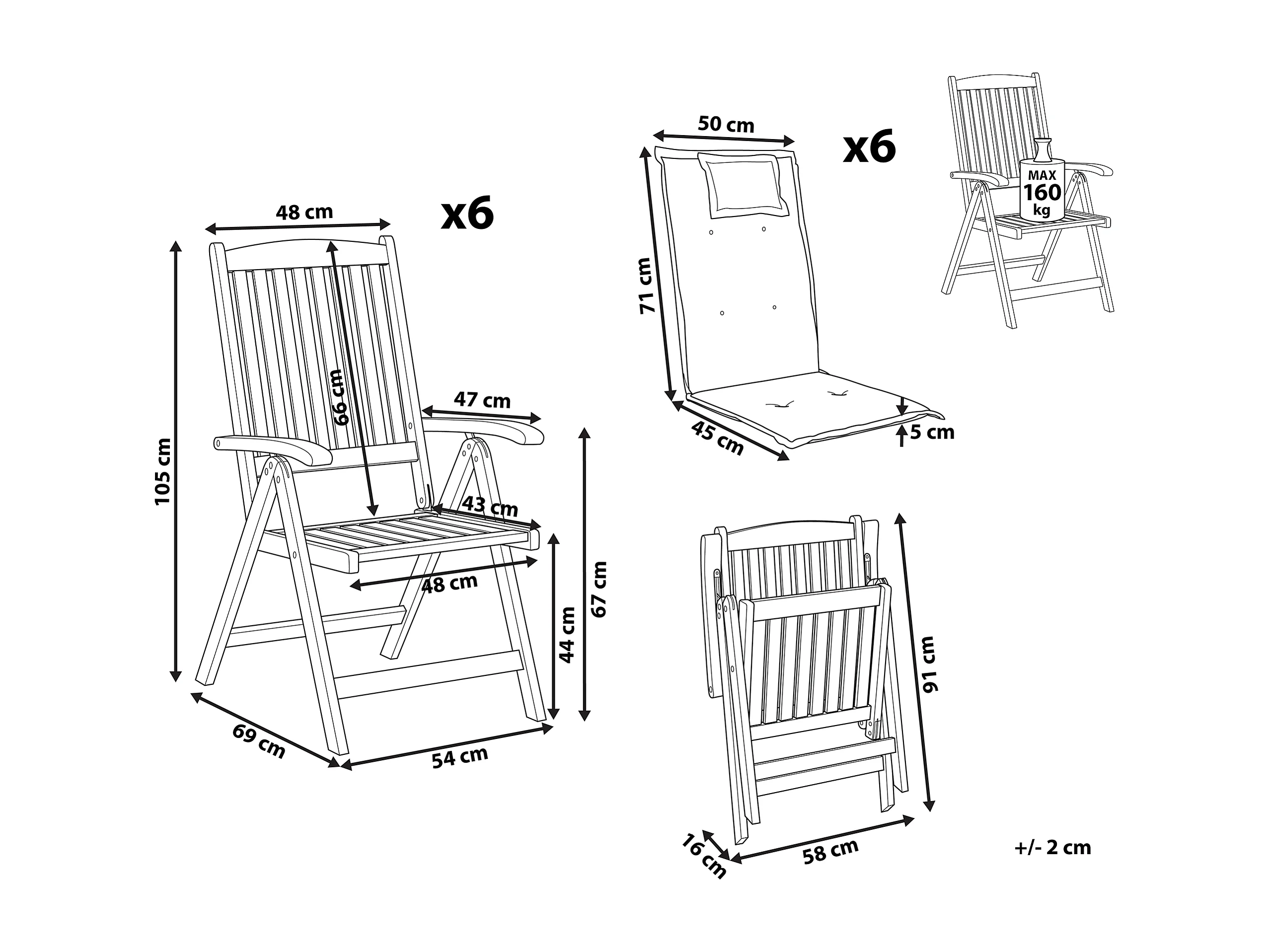 Lot de 6 chaises de jardin avec coussins AMANTEA Acacia Blanc cassé