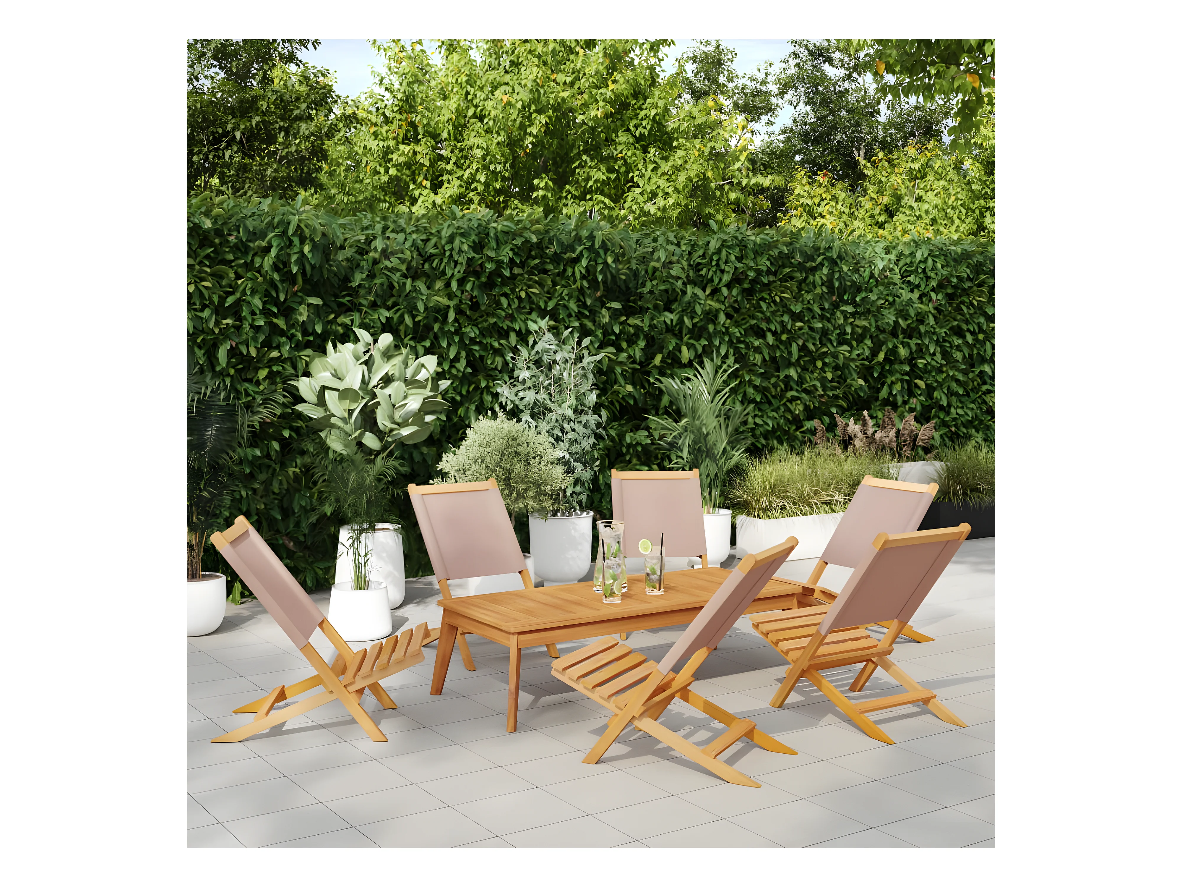 Lot de 6 Chaises de jardin pliantes taupe tissu et bois massif FR32527