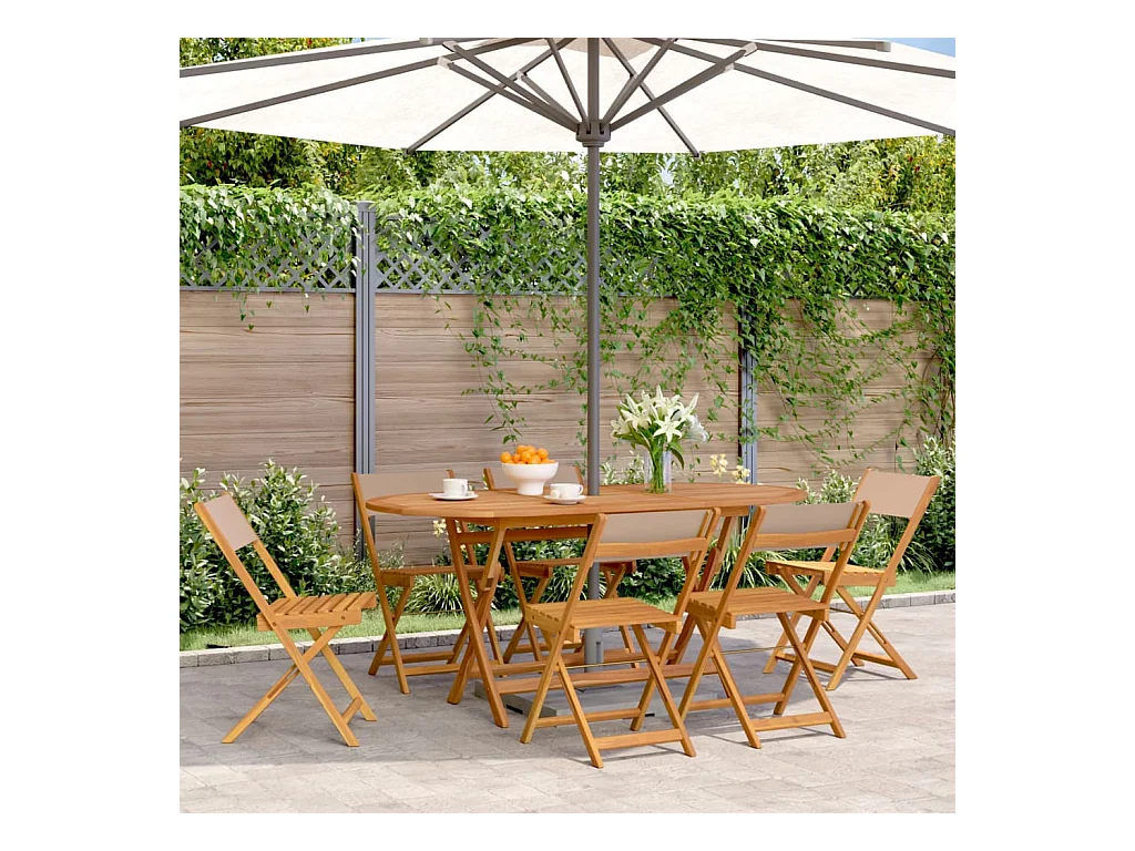 Lot de 6 Chaises de jardin pliantes taupe tissu et bois massif FR32527