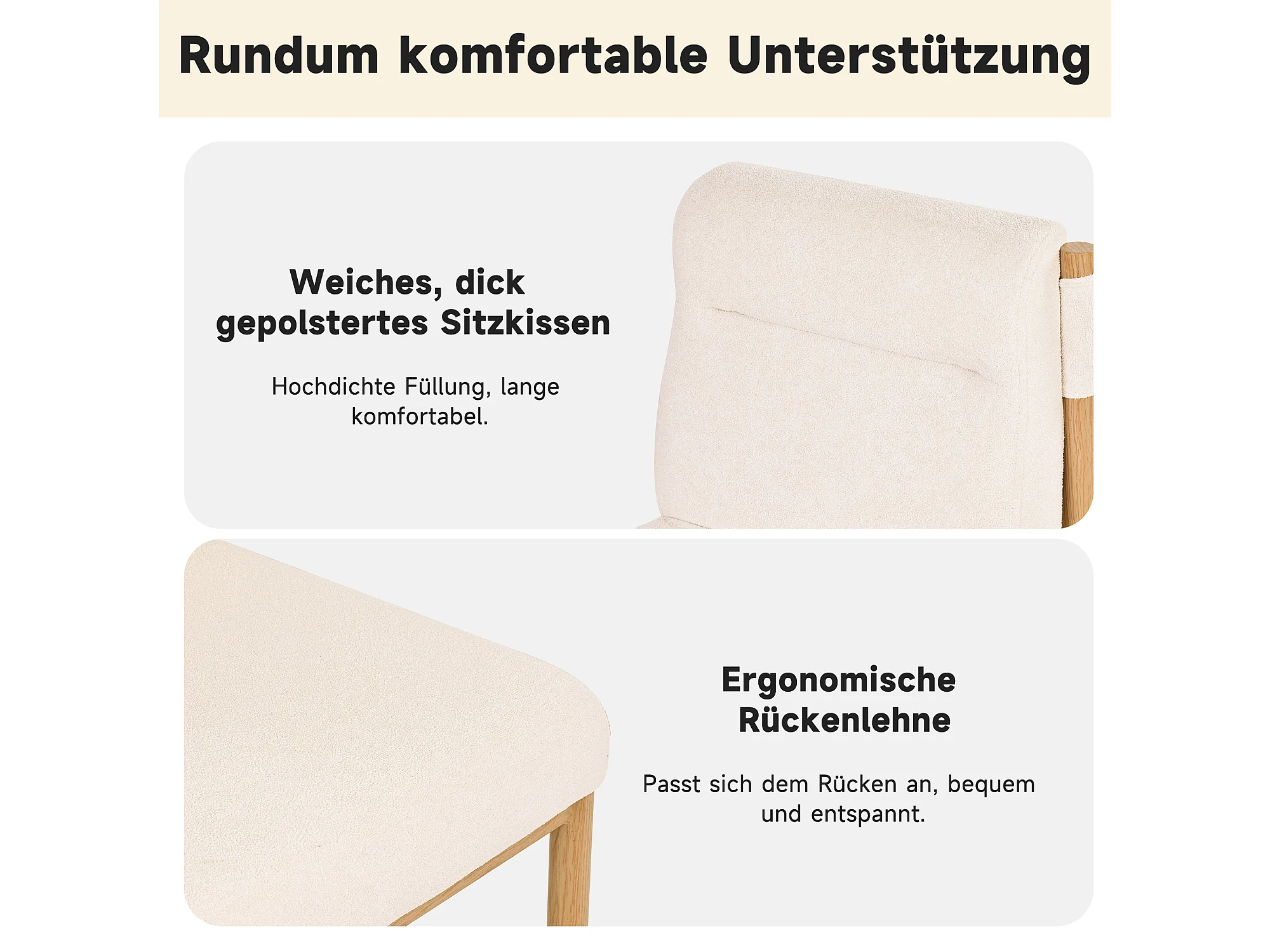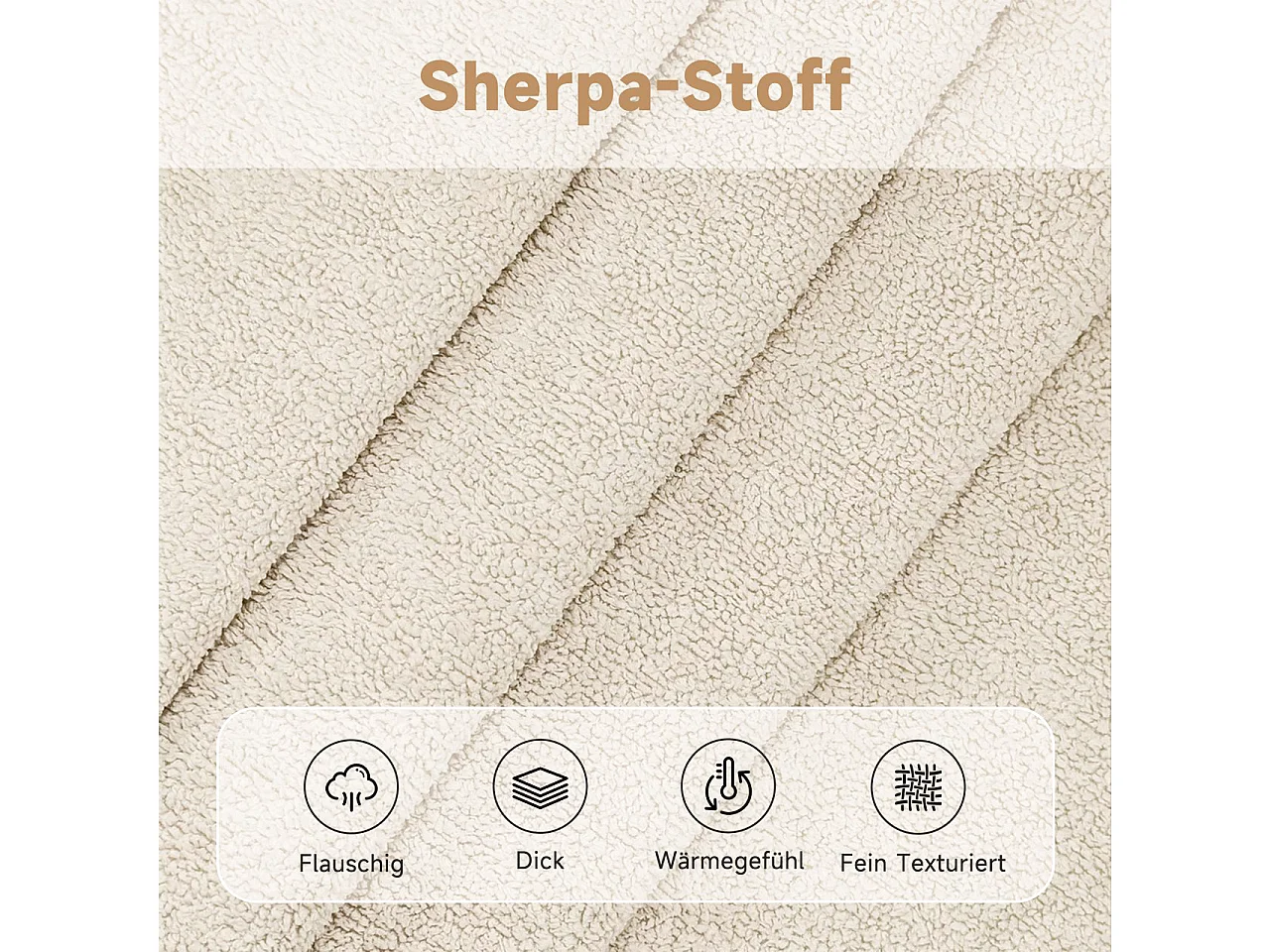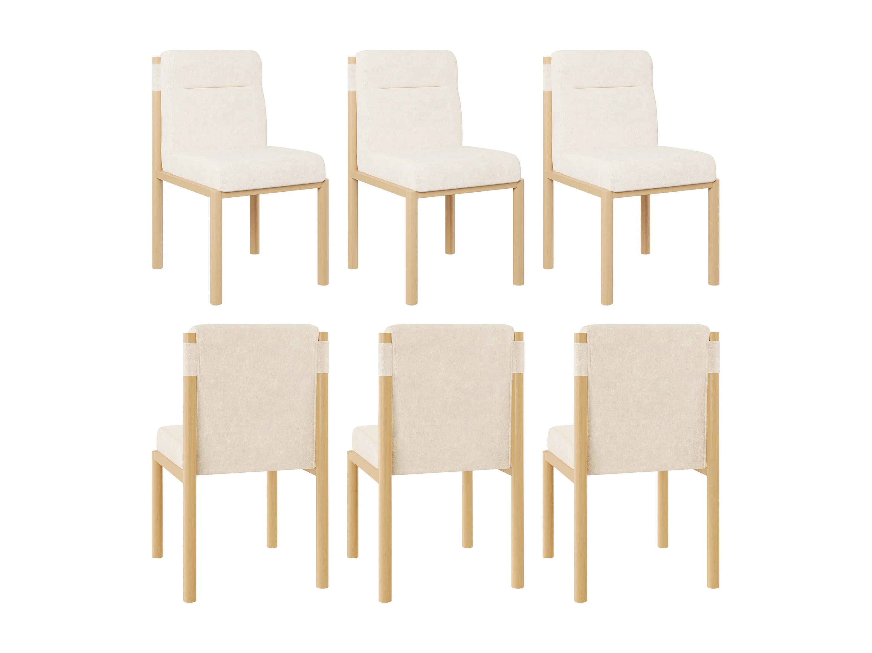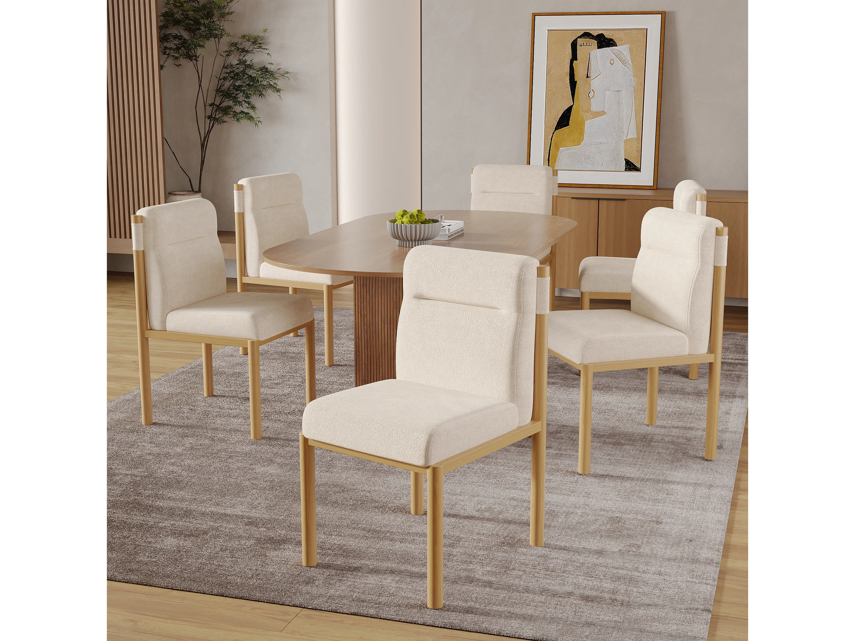 Lot de 6 chaises de salle à manger - 46 x 52 x 80.5 cm - structure effet chêne et assises rembourrées - tissu sherpa - beige.