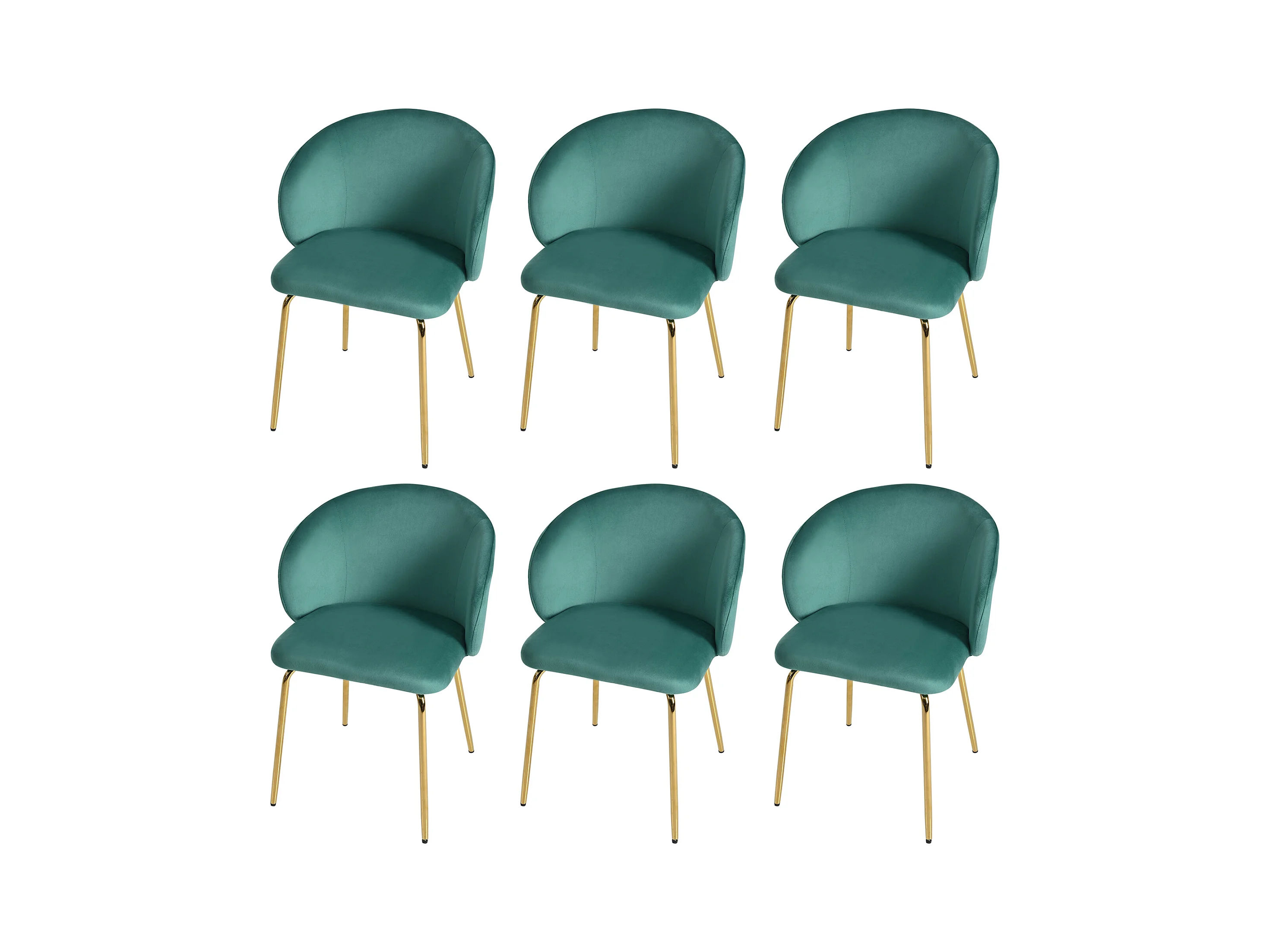 Lot de 6 chaises de salle à manger - 56 x 56 x 76 cm - avec accoudoirs et pieds en métal doré - velours - vert