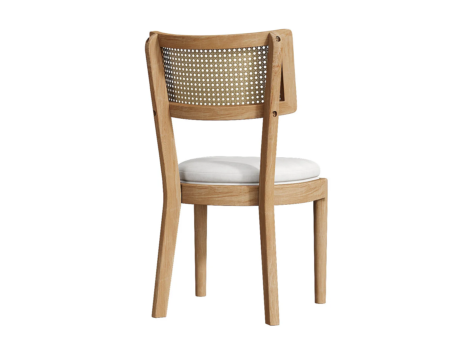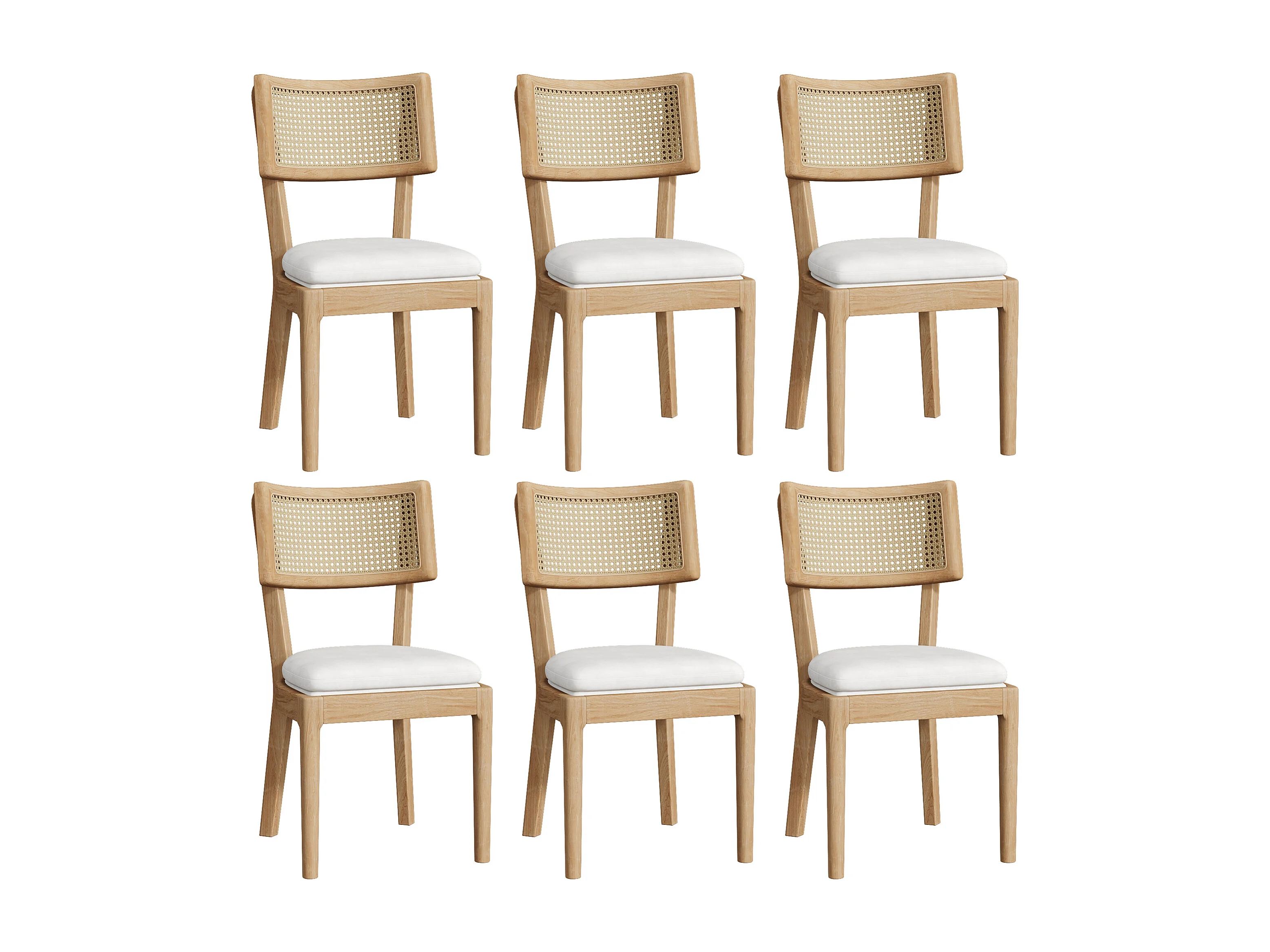 Lot de 6 chaises de salle à manger - Dossier en rotin - coussin de siège en lin - Bois massif - Naturel